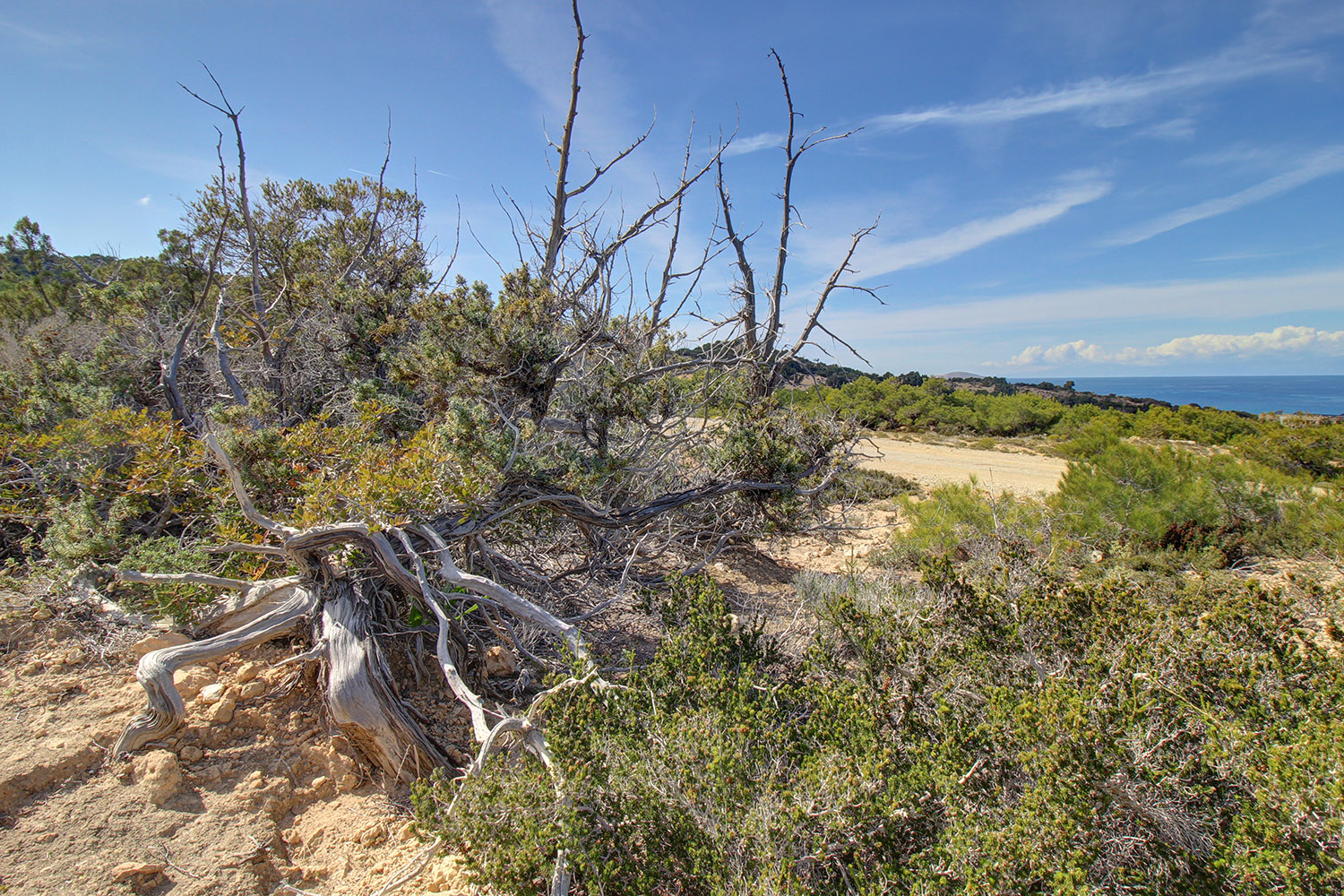 The property is situated in an impressive landscape in the northern part of the island of Gavdos. It is a plot, which is covered by natural vegetation but is an abandoned field and the land is divided into flat terraces. It is located in a privileged area as it is a few steps away from the beach Fetifes, where you will find taverns and mini markets. From this point begins the short path to the popular sandy beach of Ai Giannis. The orientation of the plot is northwest and the views from all points are impressive towards the opposite mountain peaks of Crete and the island of Gavdopoula. It is easily accessible by a road at the lowest level.