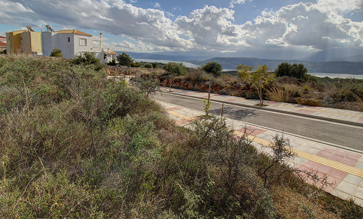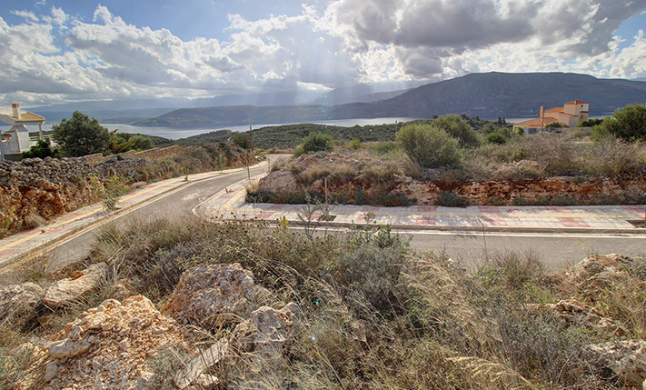 The plot is in a newly established neighborhood just outside the village Sternes of the municipal unit Akrotiri in the municipality Chania. A city plan has just been issued for the area and new roads have been constructed with new public utilities. The property is one of the privileged plots. It is rectangular, corner and has two frontages, one 30 m long on the south and one 15 m long on the east side. The ground has a gentle southern slope and therefore the views are currently panoramic towards the ridge of the White Mountains and over the bay of Souda. The plot is also located near the southern edge of the plan, which ensures views from several points, in the future.