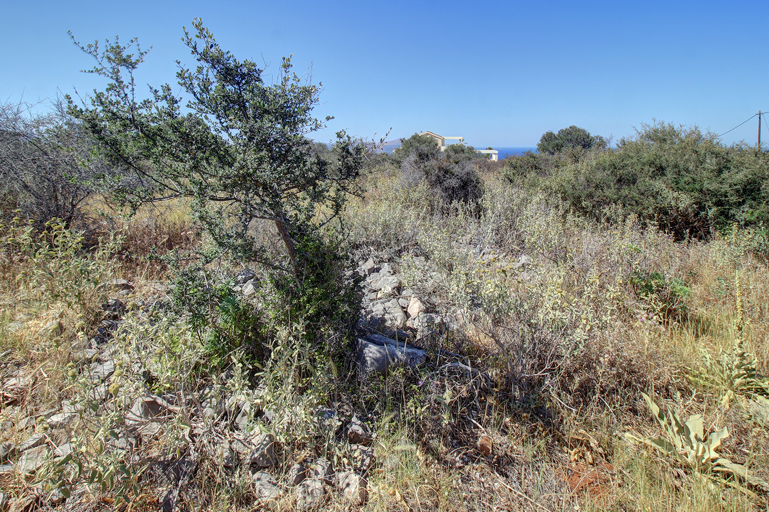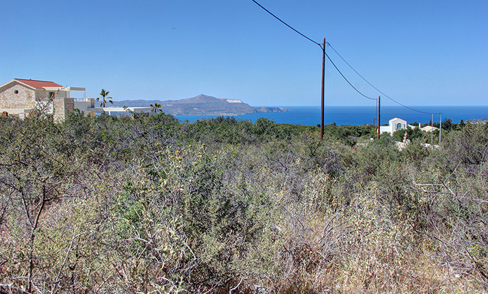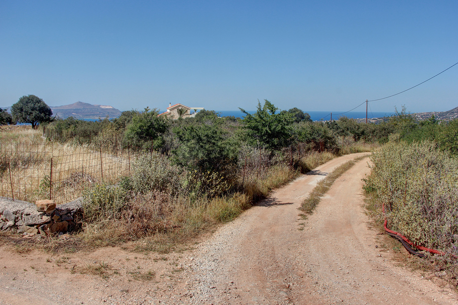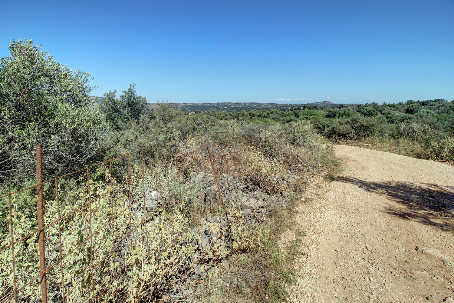 The property is in an excellent location in nature, where it is surrounded by olive groves, the wild Cretan landscape and some luxury residences in the distance. It is a buildable plot with a good, almost rectangular shape and large frontage along two sides. The ground has a gentle northeast slope and there is low native vegetation. The views are excellent up to the sea and to the ridge of the White Mountains on the south. A dirt road reaches the property, which is however well-maintained and passable along its entire length. There is also an asphalt road at a distance of about 1 km.