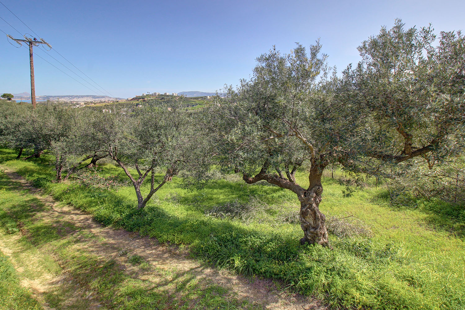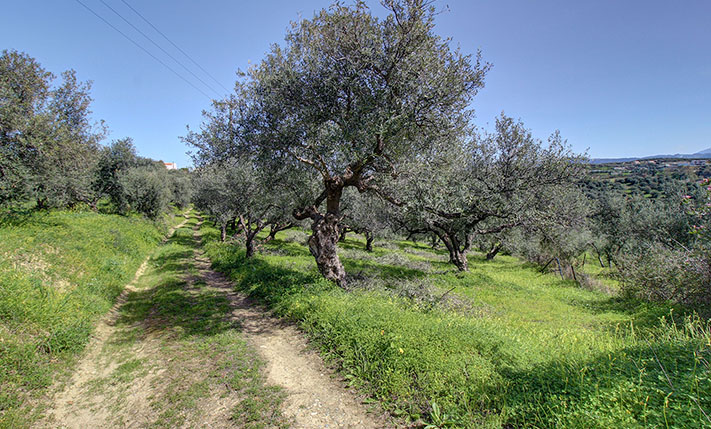 The property is on a hillside with a gentle southeast slope and is surrounded only by olive groves and some luxury residences in the distance. It is a buildable plot, which is available for sale with a building regulation certificate. Its shape is triangular and there is a road at the highest level along the northern side. On the property there are about 45 mature and productive olive trees. From any construction in the future you will have impressive views of the verdant surrounding area, up to the White Mountains in the background but also up to the sea and Chania city to the east. A passable rural road reaches the point while there is an asphalt road just 130 m away.
