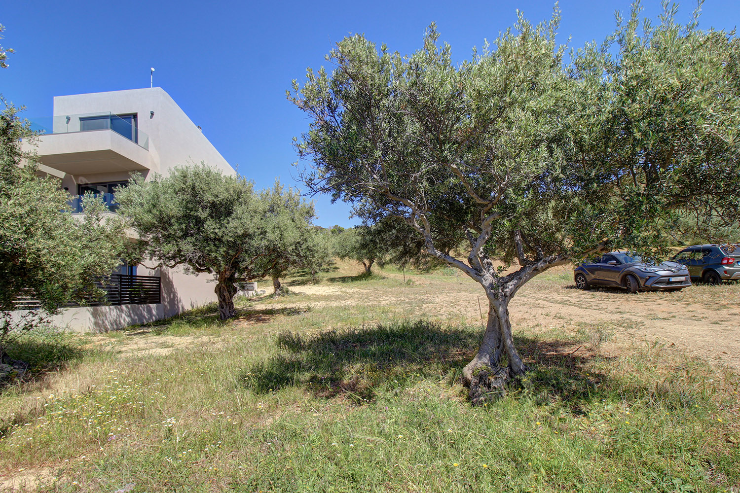 It is an excellent plot, which is flat and has beautiful views to the sea. It is at the cape of Rodopos in the municipal unit Kolymbari of the municipality Platanias, in a picturesque village with traditional houses that are sparsely built. The plot has a good rectangular shape and its frontage is on its west side on an asphalt road. Along the frontage there is a low slope that improves the views. On the plot there are 4 mature olive trees.