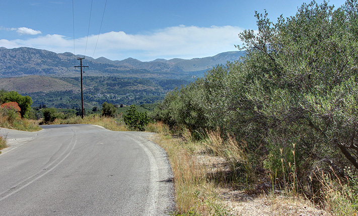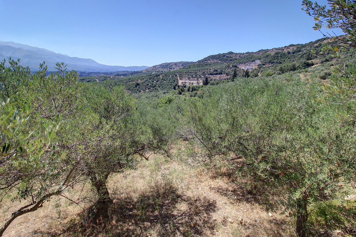 The property is just outside the small town of Vamos, on a hillside with southwest views over the plain of the Almyros river and up to the White Mountains in the distance. At the highest level of the plot there is a large frontage to an asphalt road. The ground is mainly sloping but there are large sections on terraces that are flat and have mature olive trees. The slope and the features of the property ensure good privacy and that the views will remain unobstructed as they currently are in the future. The property is an excellent choice if you want to build a house with unique views and large outdoor spaces.
