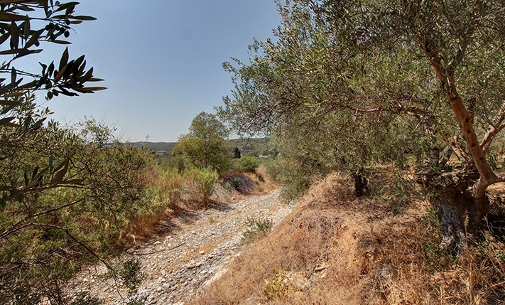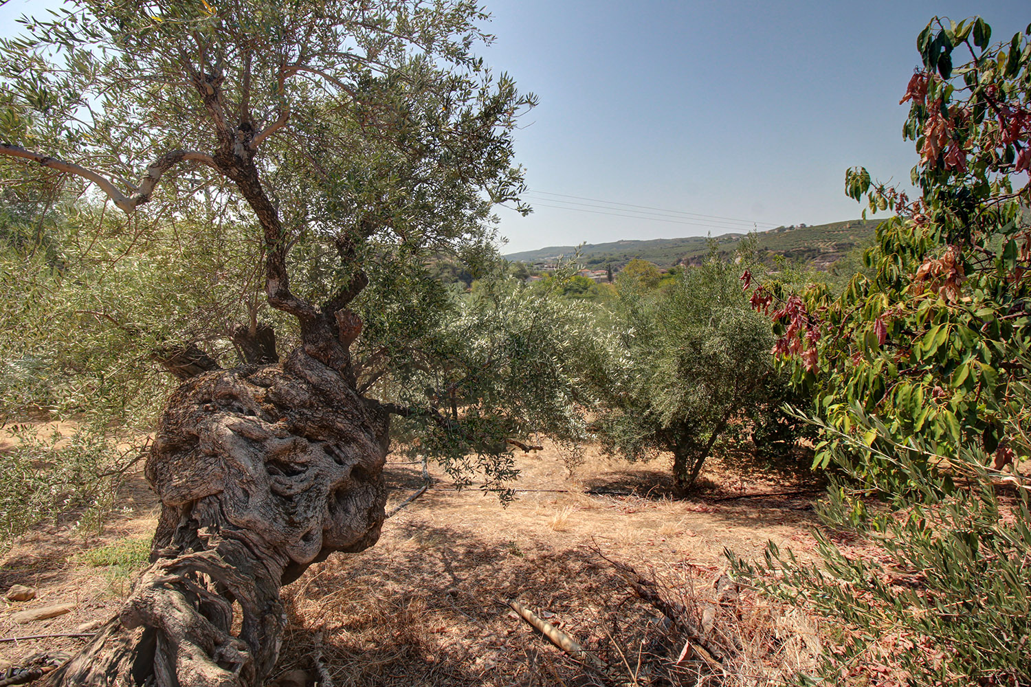 The property is in Sirili, a beautiful village in the municipality Platanias about 5 km south from its long beach. It is a plot, which is divided by the edge of the village. Its features allow you to separate it into at least two independent sections with allowed buildable area of up to 400 m² in each one. The plot has an almost triangular shape with frontages on an asphalt road to the northeast and a rural road to the east. The southern frontage is adjacent to the bank of the Tavronitis river, from where a high slope in combination with the shape of your plot protects you from potential flooding. The land has a very gentle southeast slope and there are olive trees, many of which are century-old as well as a wide variety of fruit trees.