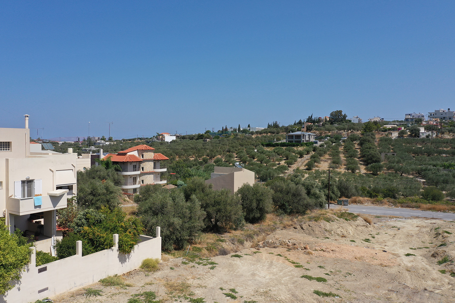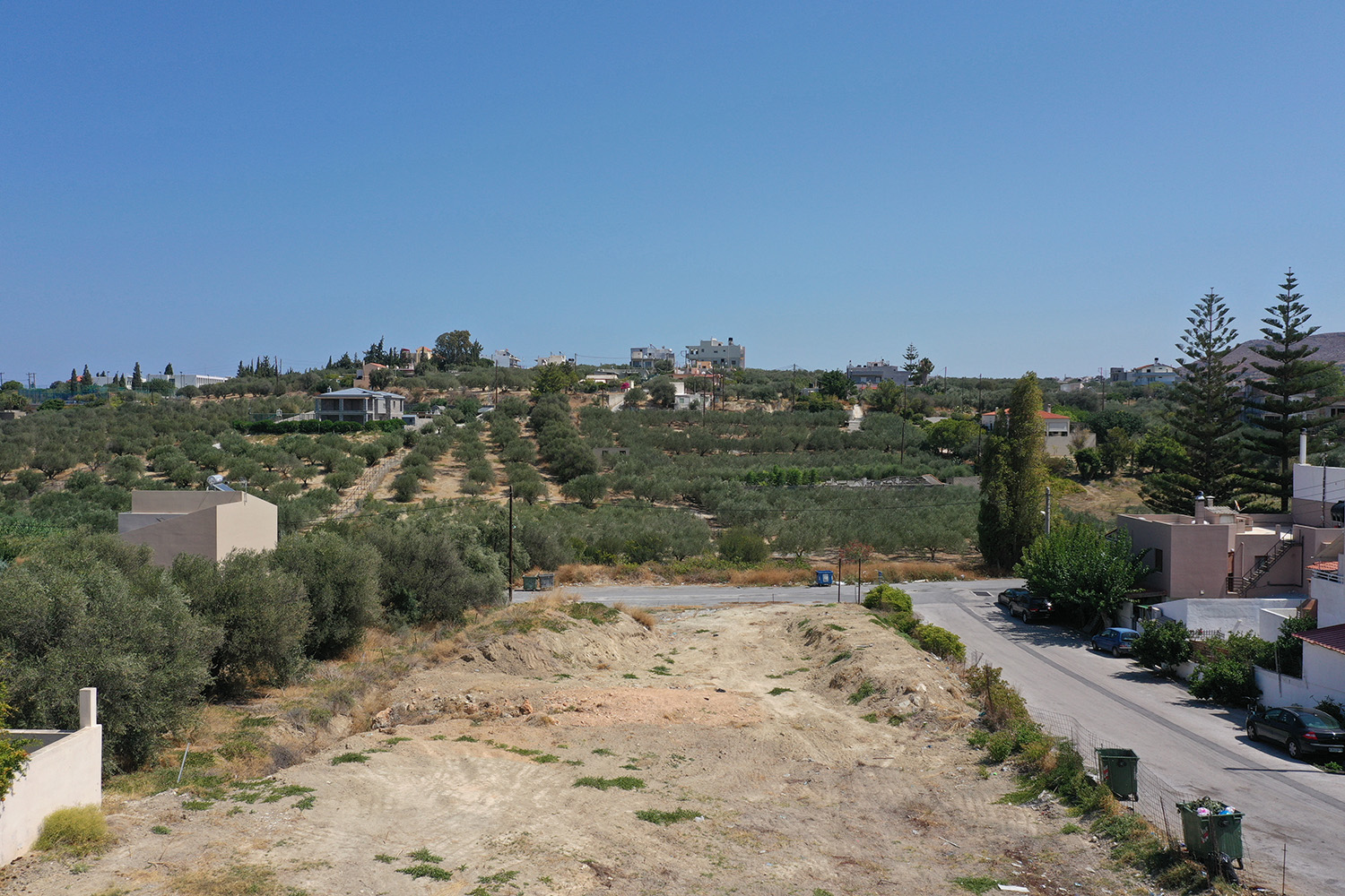 The plot is in the area of Mesampelies in the southern suburbs of the city of Heraklion. It is on the edge of the residential zone at a point with little traffic that is relatively sparsely-built. The neighborhood is family friendly and the plot is suitable for the construction of apartments that you can resell or rent out. Its shape is rectangular and consists of four almost square independent buildable plots, which form a single area and are available for sale together. The final plot is corner with a large frontage to the south and a second frontage to the east. The land is bare and has an eastern slope. On the plot you can build a beautiful residential complex with a building ratio of 0.6, a cover rate of up to 60% and a maximum allowed building height of up to 9 m. Knossos Avenue is approximately 500 m away and the city center is approximately 4 km away.