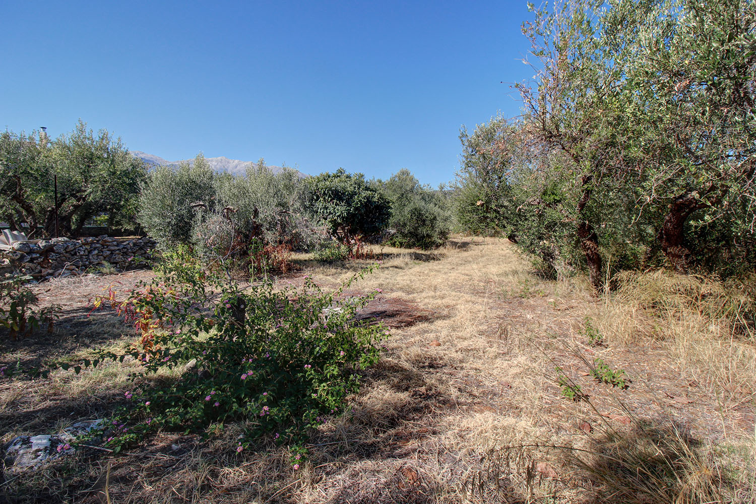The plot is in a traditional village of Apokoronas, about 5-10 minutes south of the seaside small town of Kalyves. The village has enough permanent population while the plot is on a quiet dead-end side road about 500 m away from the central square. The land is flat and there are about 35 old olive trees as well as some fruit trees. The entire plot is fenced with dry-stone wall and metal wire mesh while there is access from an asphalt road on the east side. The views are excellent towards the White Mountains but also up to the sea in the background, especially if you build an upper floor. The size and the building ratio of the plot allow the construction of a residential complex with 4 or up to 5 houses. Alternatively, you can build your personal residence and sell part of the plot and the allowed buildable area or keep it as a good investment.