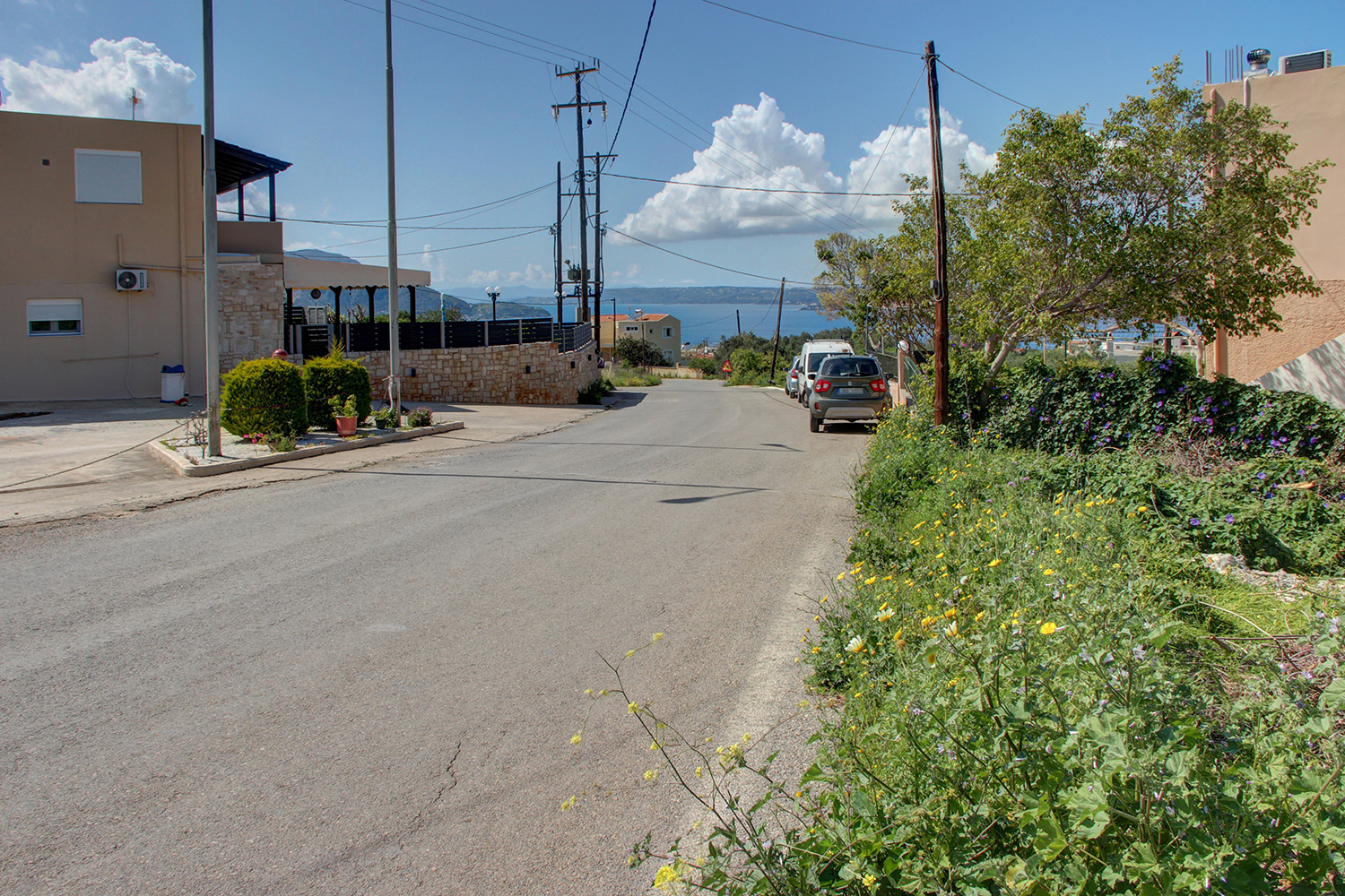 The region attracts numerous tourists during the summer months and has taverns, cafes, and mini markets, many of which remain open year-round. In the small town of Kalyves, which is about 10 minutes' drive away, you will find banks, supermarkets, schools and various shops for your daily needs. The city and airport of Chania are approximately 40 and 45 minutes' drive away, respectively.