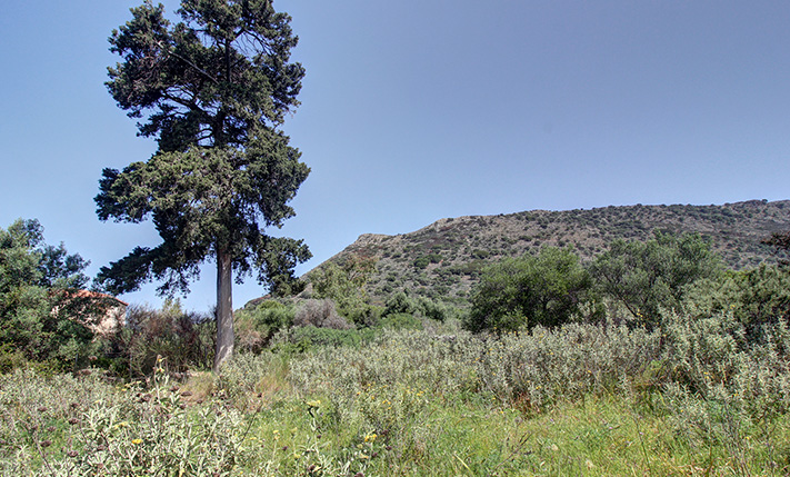 The plot is on the edge and just outside the village of Drapanos, in the municipal unit Vamos of the municipality Apokoronas. It is accessible by an asphalt road along its southern frontage, which has little traffic all year round as it leads to an area that is protected by the Natura 2000 network and ends at a rocky coast after about 3 km. The land is flat and there is natural vegetation with several big trees, which can be removed according to the needs of any construction in the future. Due to the proximity to the village there is easy access to public utilities while the land makes the construction of a large detached house inexpensive. To the south there are beautiful views towards the White Mountains from all points of the plot, which are mainly obstructed by the trees on it.