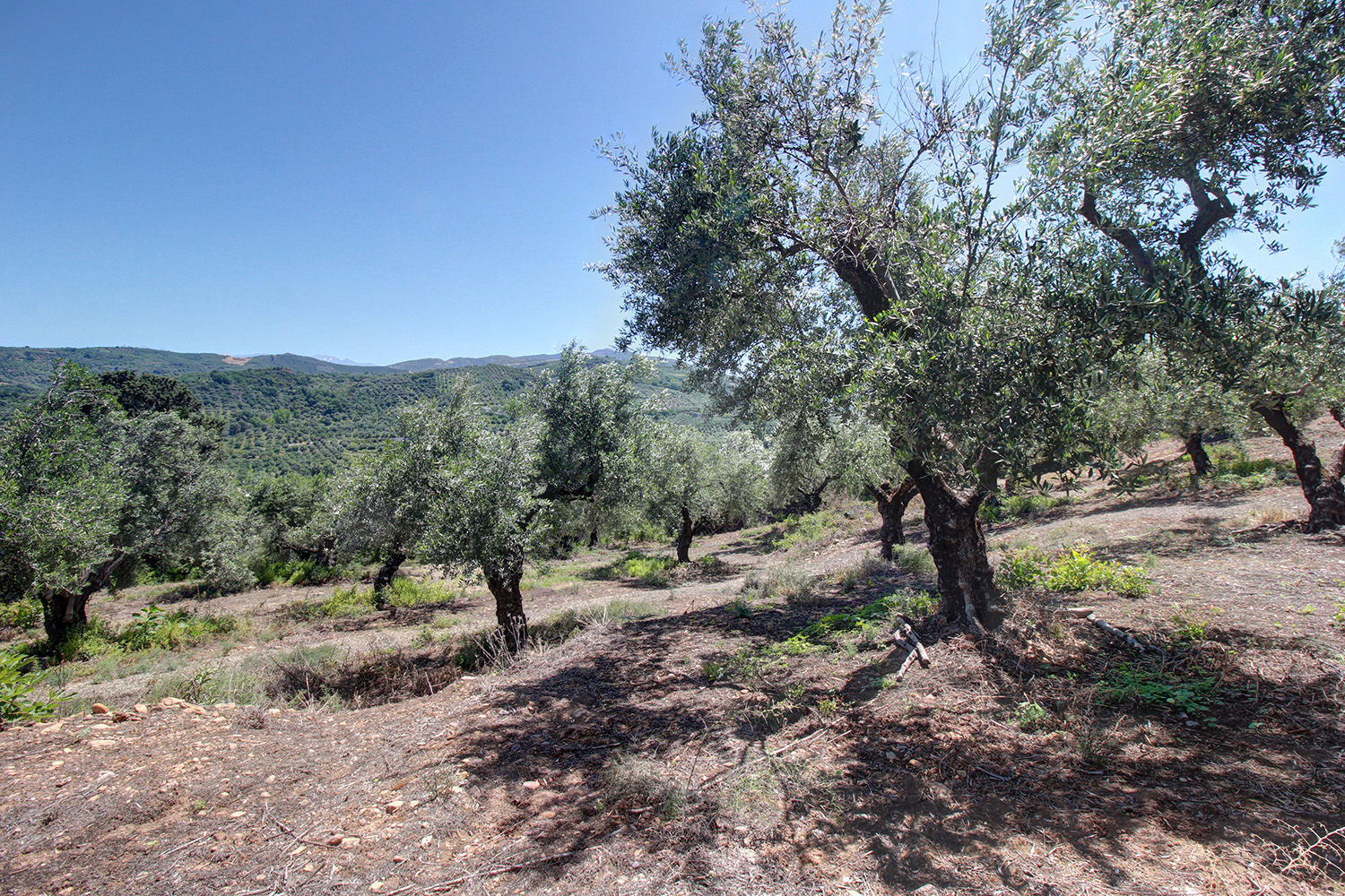 The property is just outside and south of the village Voukolies in the municipality Platanias, in a beautiful location where it is surrounded by countless olive groves. It is a plot, which has a gentle southeast slope. There are about 30 productive old olive trees on the property. It has a good shape and there are frontages on an asphalt road along the lower and along the higher level. The road is the old provincial that reached Paleochora but a new bypass has been constructed so that in fact it is an extremely quiet location in nature. The plot is suitable for the construction of a large detached house in a green area and the views are beautiful over the olive groves of the region and the verdant surrounding hills.