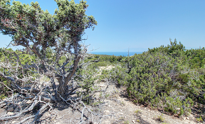 The property is located approximately 2 km south of Fokia beach in the northern part of the island of Gavdos. It is a well-shaped plot of land, which has been classified entirely as agricultural by the forestry department and allows you to use it immediately for any purpose. A rural road reaches the point, which becomes rough for approximately 1 km but has a good width and remains passable all year round by a tall car. On the adjacent property there is a neighboring residence, however the public utilities are at a distance. Therefore, the plot is ideal for the construction of an energy efficient holiday home or a small tourist complex. The views from all points are excellent towards the wild landscape of the island, to the sea but also north towards Crete. The ground is mainly rocky and there are cypresses and cedars, which can be removed according to the needs of any construction.