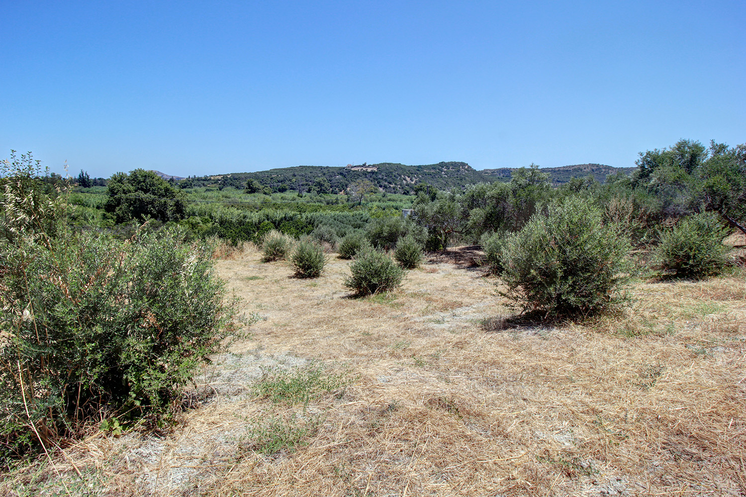 The property is very close to a junction of the northern highway of Crete, in an easily accessible area from where you can go quickly to any point but also to the center of Chania in just 20 minutes' drive. It consists of two parts, one of which is a buildable plot of 758 m² with a ready preliminary approval of a building permit while the second is 593 m² and is not buildable. Between them there is an abandoned irrigation ditch, which has been filled in so that the two properties form a single area. The land has a northeastern slope and at the lowest level there is a designated asphalt road. On the plot there are approximately 35 mature and productive olive trees and from its larger part the views are beautiful up to the sea and the islet of Agioi Theodoroi.