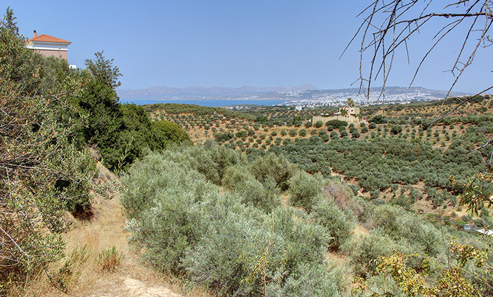 The property is in a prime location 2 km from the sea and 15-20 minutes west of Chania city. It is a plot with a southeast slope, from which the views are excellent towards the White Mountains and up to the sea in the distance. There are olive trees of various ages, which are maintained and productive. The area consists of olive groves and luxury villas. There are two frontages on asphalt roads, one at the higher and one along the lower level. The property is suitable for the construction of a luxury residence close to the city.