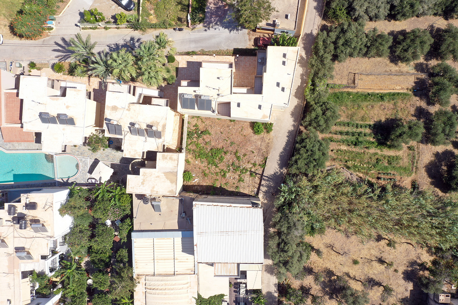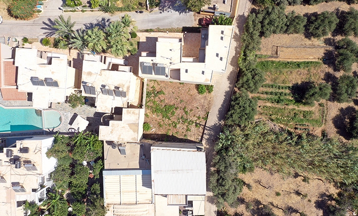 The plot is in the seaside resort of Platanias, in the center of the village and a few steps from the beach of the area. It is accessible by a small side road, which is paved with cement and has little traffic and therefore you avoid the noises of the area. At the same time, it is only 30 m from the old highway to Chania-Kissamos, where you can find all kinds of shops and services. The plot has a good, almost square shape and its frontage is along its eastern side. It is suitable for a detached house close to amenities and the sea or for a small complex of apartments for use or resale.