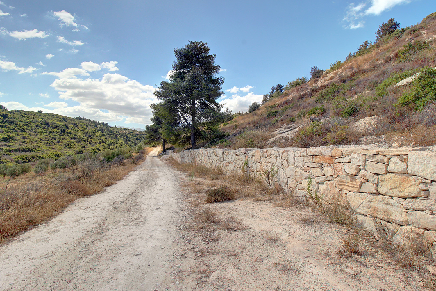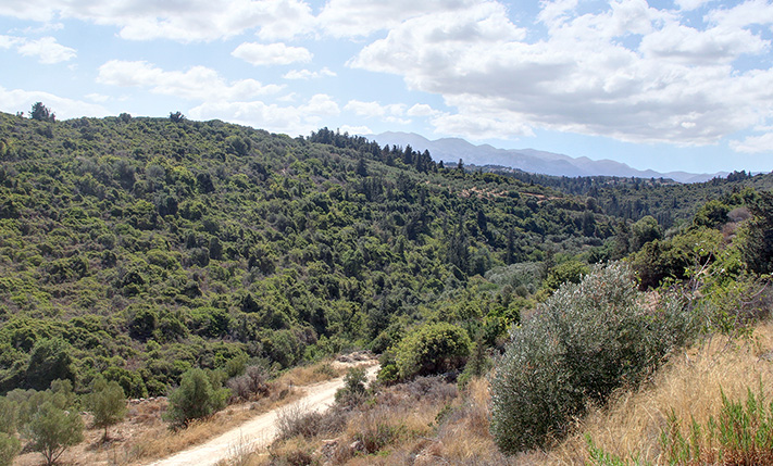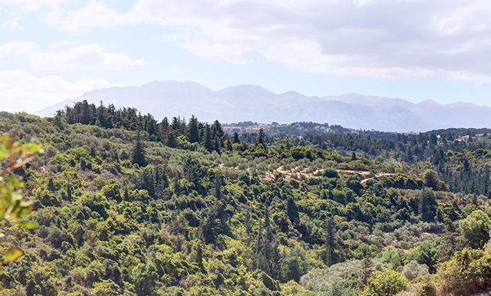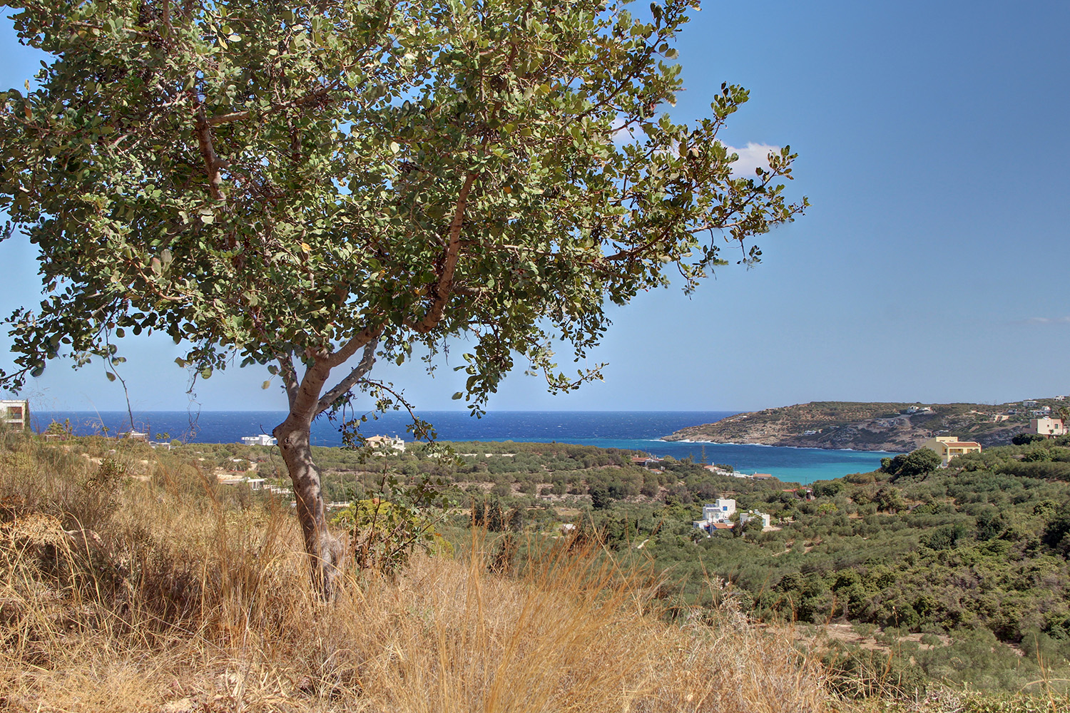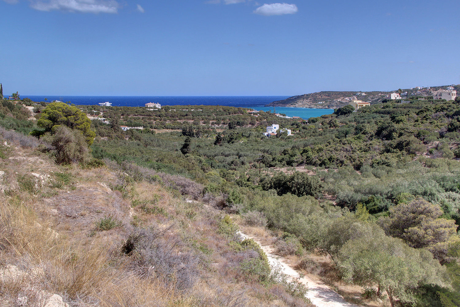 The property is in a beautiful spot between the villages of Kalives and Almyrida in the municipality of Apokoronas. It is on an eastern hillside with a rural road at its lowest level while the ground is uphill and divided into terraces. The location seems secluded in a small verdant valley, however there is an asphalt road at a distance of about 250 m and the beach of Kera is a short walk away. The views, also, are excellent from all points north to the sea and Souda Bay and southeast to the ridge of the White Mountains. The features of the property make it ideal for the construction of a luxury residence.