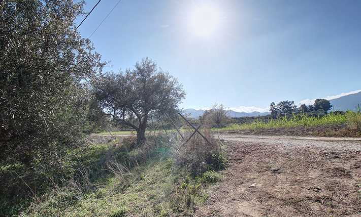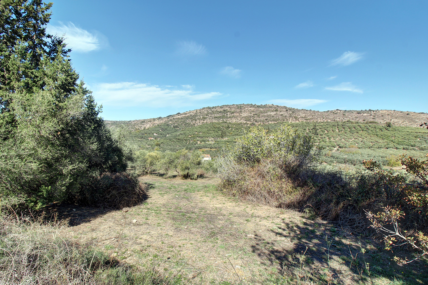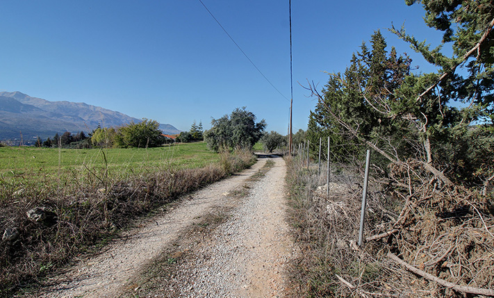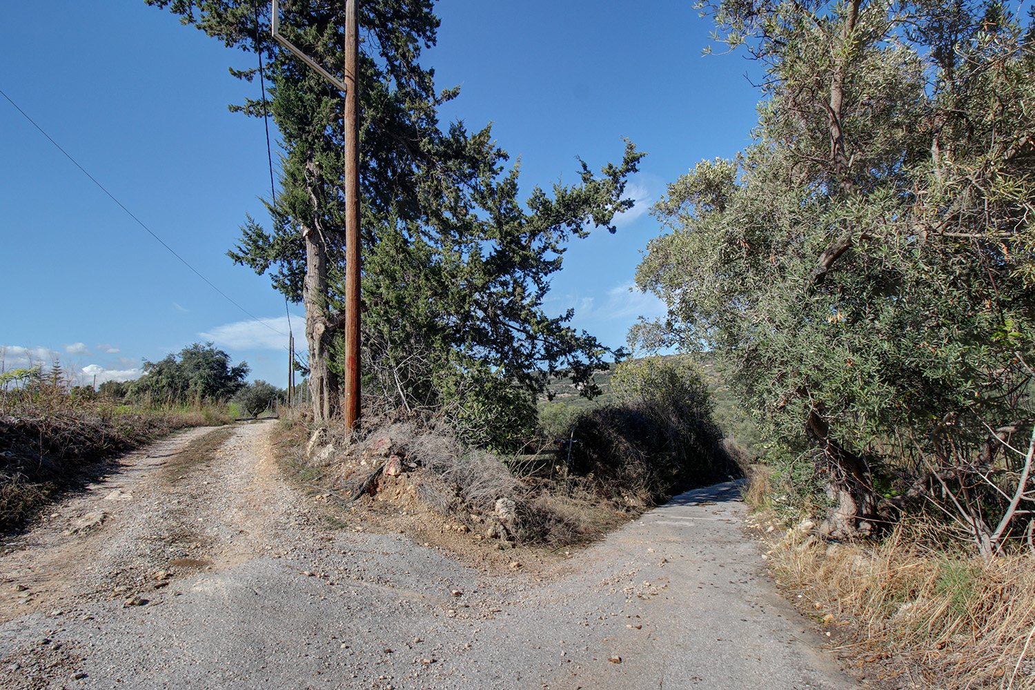 The property is on the edge of a picturesque village of Apokoronas, on a side road, which has little traffic and it is fairly quiet. It is a triangular-shaped plot with large frontages to the south and north-east. Its largest part is out of the residential zone while a section of 1,000 m² allows you to build up to 400 m² areas for main residential use. The view to the south is impressive towards the White Mountains and it is difficult to be obstructed as the property is adjacent to the edge of the village. The land has a gentle northeast slope and there are approximately 25 mature and productive olive trees. The allowed buildable area is sufficient in order to construct a small residential complex for use or resale but the plot also allows you to build your residence in the future.