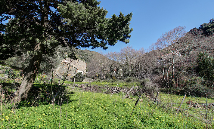 The plot is situated in an extremely picturesque area, in a quiet neighborhood, close to the road that leads to the famous Elafonisi. It is located on the edge of the village, which ensures complete quiet as vehicles rarely pass through the area. A short distance away, the gentle sounds of a stream with running water enhance the feeling of tranquility and relaxation that the views from every side already offer. The plot is corner with a main frontage to the north as well as a small rural road that is adjacent to the east and south sides. The land is almost flat and is slightly inclined towards the south. On the southern edge there is a slope with a dry-stone wall that ensures the views. In the center of the plot there is a cypress tree, which can be removed according to the needs of any study.