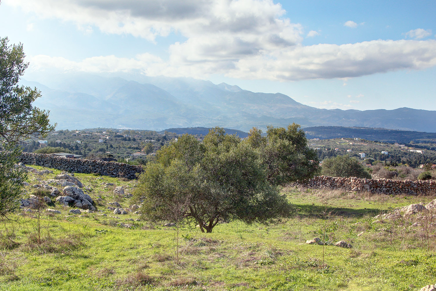 The plot is located just outside the village Kefalas of the municipal unit Vamos in the municipality Apokoronas. The largest part of the area is bare while there are about 15 olive trees. The ground is concave towards the middle while there is a large elevated point at the back, which is suitable for the construction of a beautiful detached house. Then, there is a slope that ensures that the views will remain as they currently are in the future, which are panoramic to the sea and also south to the White Mountains. The property is fenced around with a dry-stone wall while a part is adjacent to an old path.