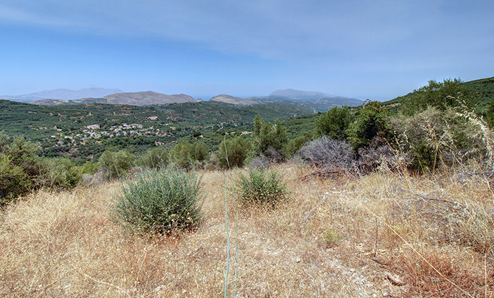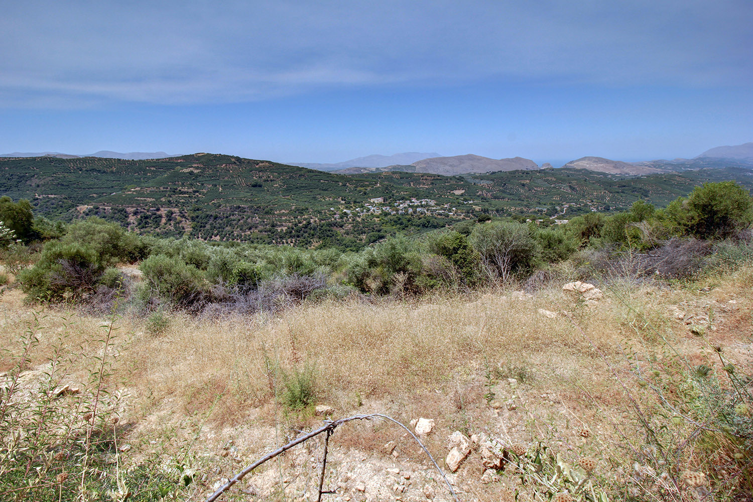 The property is on a hillside just outside the village of Dromonero in the municipality of Platanias, very close to the road that leads to Paleochora in the south of the prefecture. They are two adjacent plots, which form a single area with a good shape. A rural road reaches the lowest level, from where the provincial road to Tavronitis-Paleochora is only 70 m away. The land has a northwest slope and in some areas there are mature and productive olive trees while in others there were trees that have been abandoned. In any case, the property is ideal for an olive grove and its size is sufficient in order to plant more than 400 trees that will provide you with a significant income. For any alternative use, the views are impressive from all points and extend over a verdant valley and up to the sea in the distance.