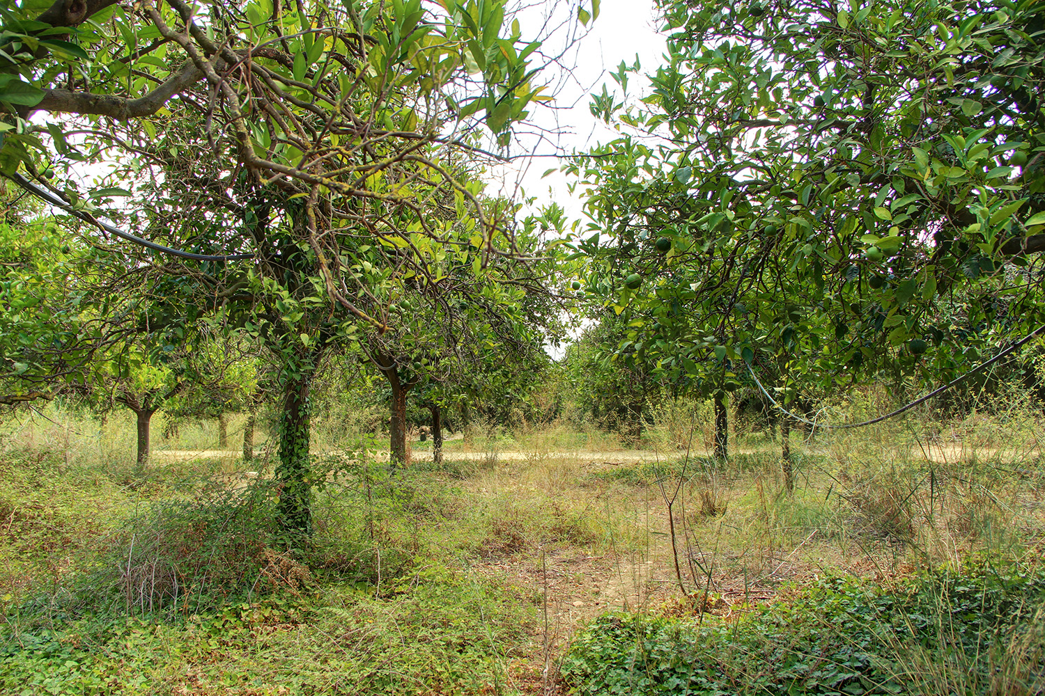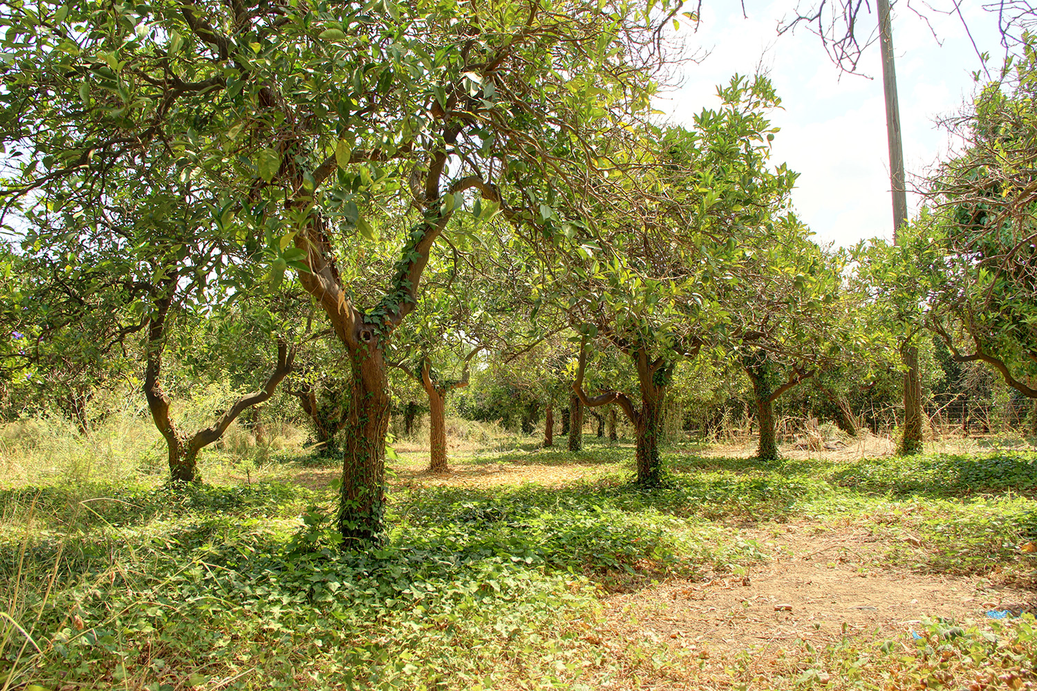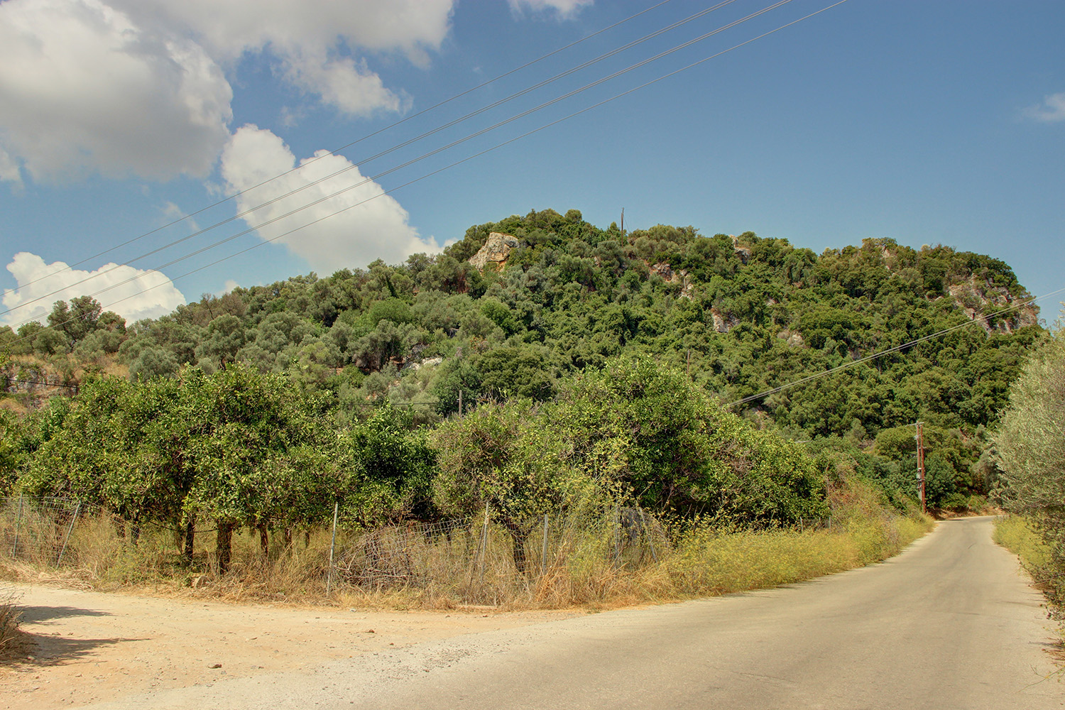 They are three adjacent plots, which are separated by two vertical roads. The largest of the three has an area of 7,141 m² and is sloping. You can build up to 242 m² and most of it is bare. There are also some large olive trees, locust trees and a cave. The two smaller sections are located directly in front and opposite the largest plot. The one is buildable and has an area of 4,235 m² and the smallest is 1,669 m². These two sections are flat, adjacent to streams and have about 250 large productive orange trees.