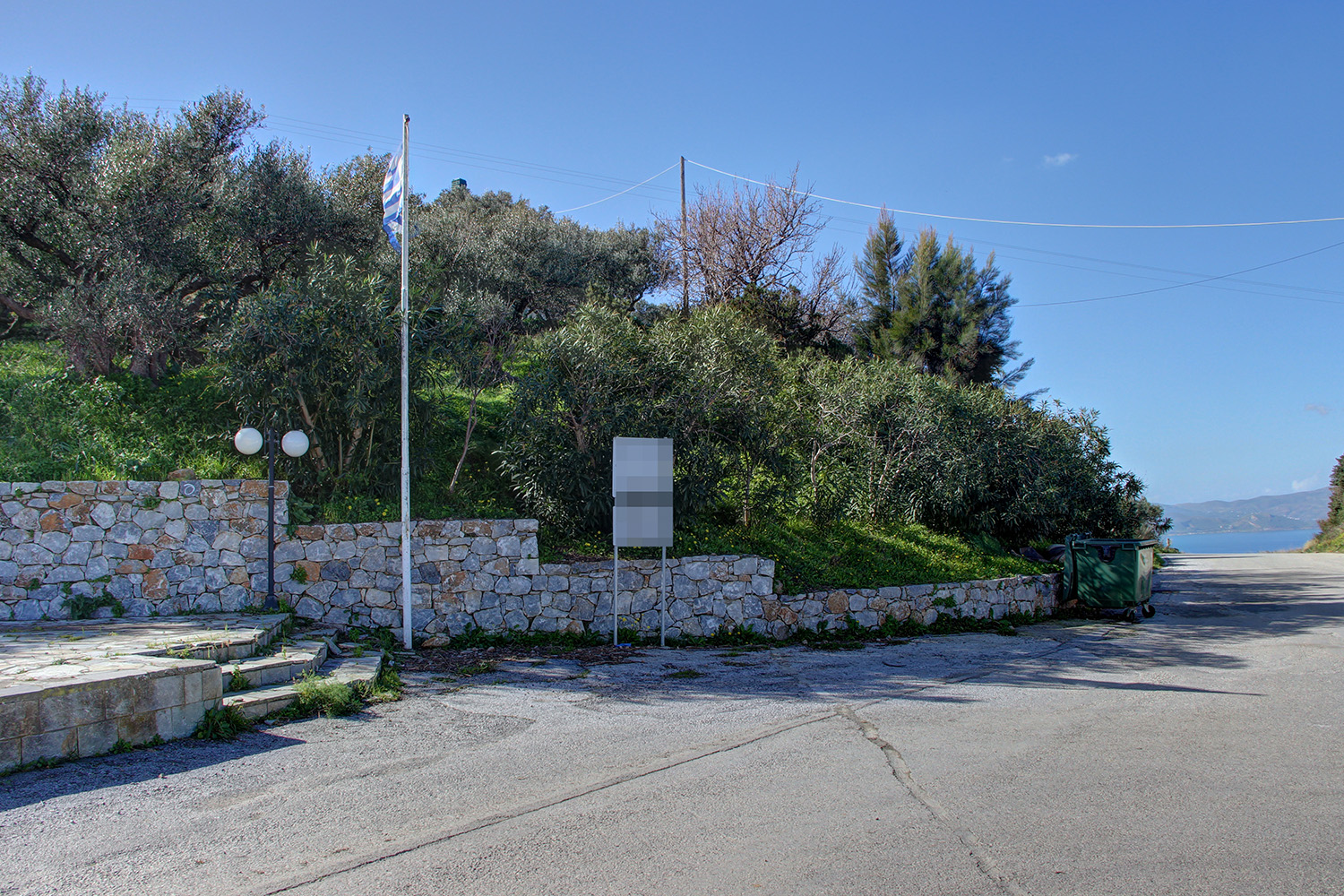 The property is in a small village about 10 minutes' drive southwest from the seaside Kolymbari and 15 minutes east from the small town of Kissamos. It is a sloping plot in the residential zone, on which there are old olive trees. The orientation is northeast and there are side views west to the sea and over the bay of Kissamos. It is suitable for a large detached house with a garden or for a small residential complex.