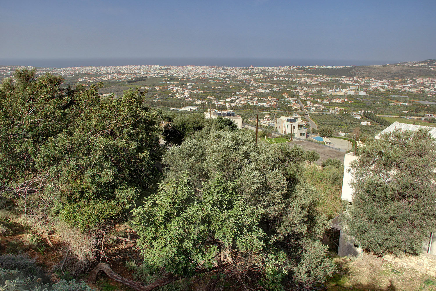 The area is very quiet and sparsely built with scattered luxury villas. The location is ideal if you work in the city center while very close there is a junction of the highway to Chania-Rethymnon, from where you can very easily go anywhere. Within 5 minutes' drive there are the villages of Nerokourou and Tsikalaria, where you will find supermarkets, pharmacies and several shops. The city center of Chania is about 10 minutes' drive.