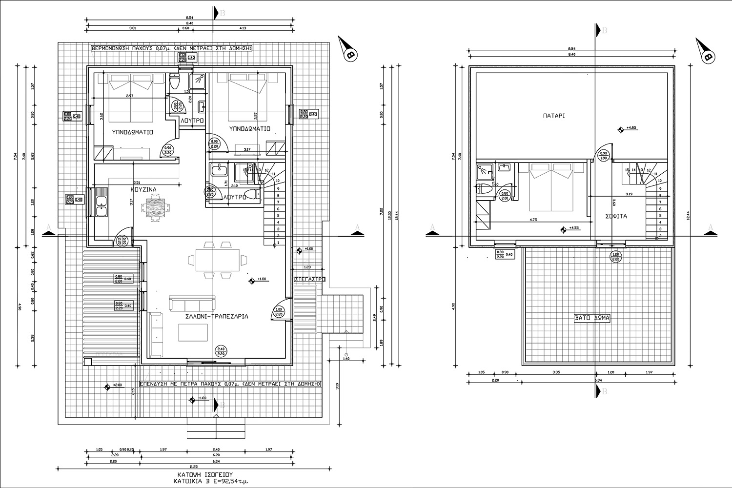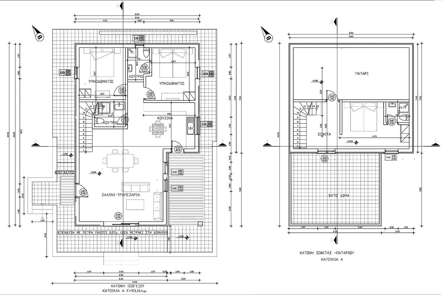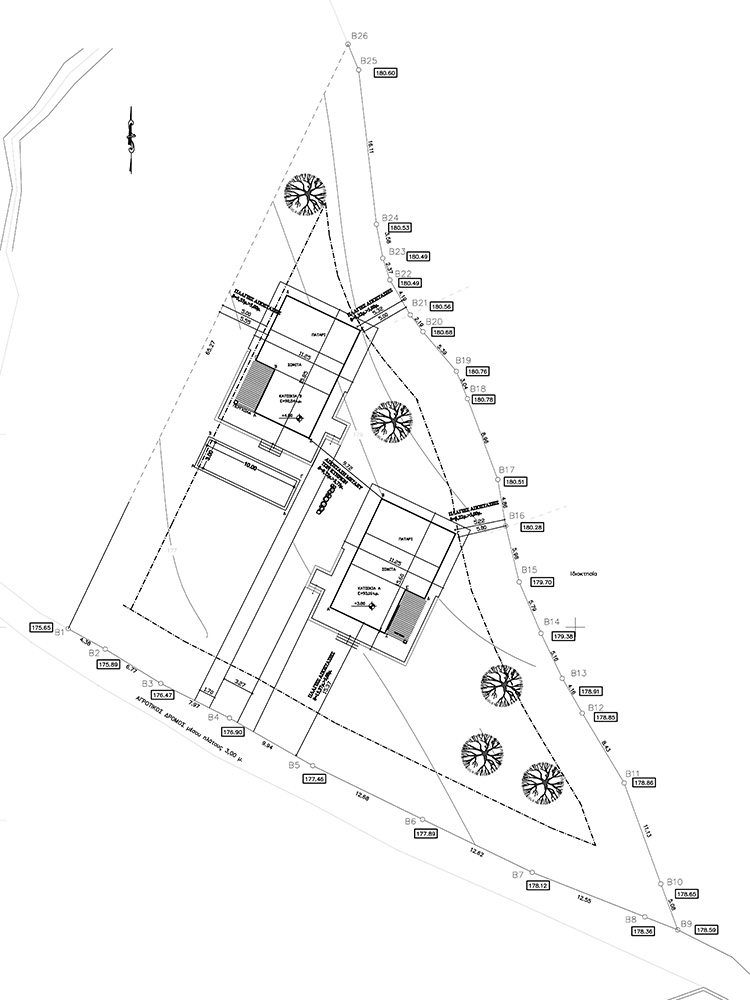 The property is just outside the village of Kaina, in an easily accessible spot. It has unobstructed views towards the White Mountains and over a verdant plain. They are two adjacent plots of 1,634 m² and 2,271 m², which are available for sale together. The sale price is for both sections. A building permit has been issued for the property and is available for immediate use, for the construction of two luxury houses of 93 m² each. There are currently around 80 big and productive olive trees on the property, which you can remove or keep according to your needs. The two plots form a triangular area with a slight southern slope and with a large frontage at the lowest level along the southern side.