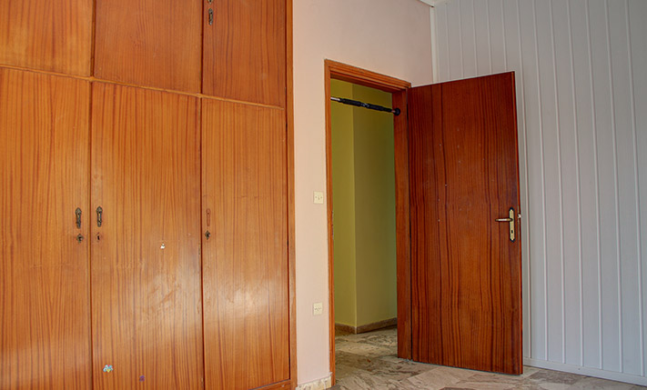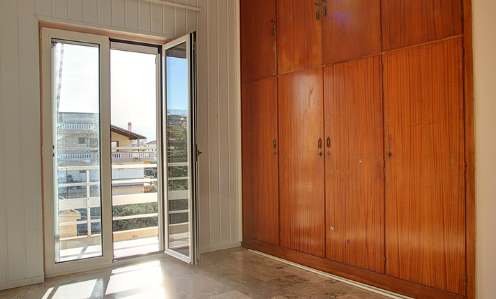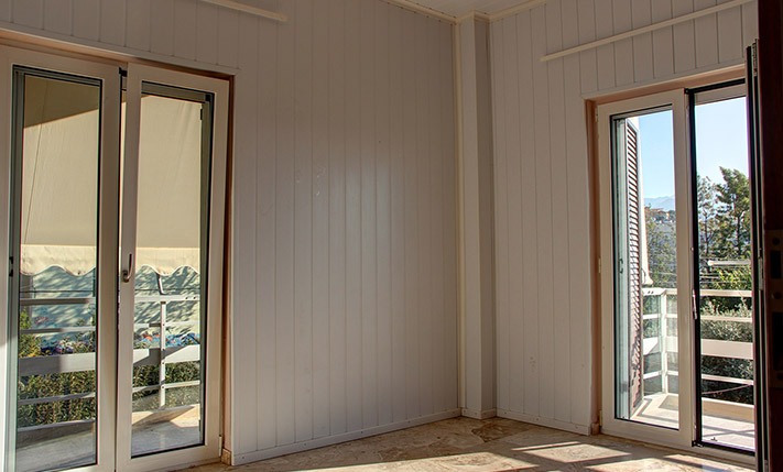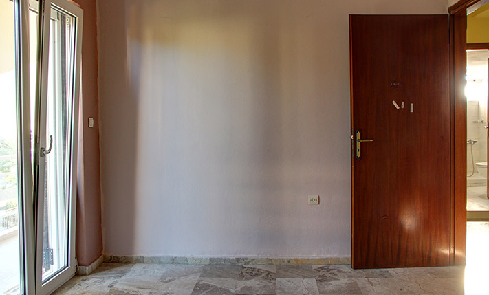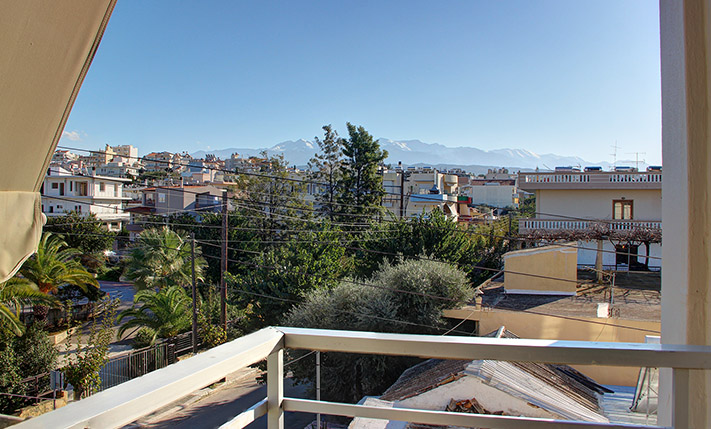 The open-plan space is very large. Therefore, you can separate it, if you want to add a third bedroom and you may move the kitchen to another area. The doors and the windows have been recently replaced and have screens, double glazing and tilt system. The building has central oil heating but the apartment has been disconnected and the radiators have been removed. There is also a solar panel. The two balconies of the apartment have nice views to the White Mountains and above the city of Chania.