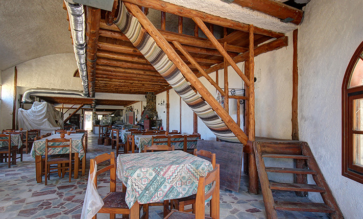 At the frontage of the property, there are mature trees and plenty of space for parking or if you want to place tables under the shade of the trees. The building comprises a ground-floor, open-plan dining and kitchen area with a WC for men and women as well as a storage-room at the back. The ground floor is of 229 m² and there is an additional 130 m² basement as well as a large loft, where a three-room apartment-guesthouse and a space for café have been created. The basement has its own access from the back of the building and is connected with the ground floor by an elevator, internally. In the dining area, there are many traditional wooden elements on the stairs and the ceiling as well as a beautiful traditional fireplace. The building is heated by an olive kernel wood boiler and central ventilation system. Below the building, there is a water storage cistern, which has rainwater that is collected from the roof. The capacity of the cistern is 150 m³, which is more than enough for the operation of any business as there is no central water supply network in the wider area.