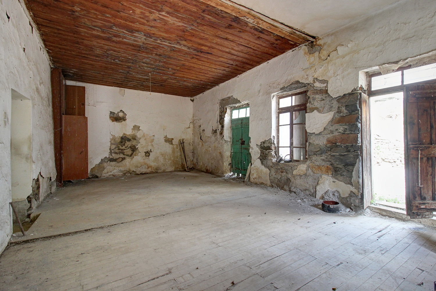 The road in front of the property is on the way to Sougia, which makes the property suitable for tourist use. On the plot there is enough space for parking and for the construction of a swimming pool or a beautiful themed garden. The ground has a steep slope and each floor is accessible from ground level. From the bottom to the top, the area of each level is 96 m², 125 m² and 61 m², respectively. The property has beautiful traditional elements that include a wood-fired oven in the room of the old kitchen, wall niches, wooden ceilings and large spaces and openings.