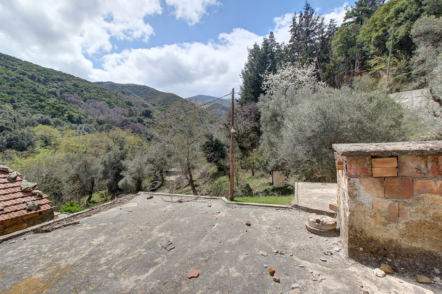The property is in a semi-mountainous village of the municipality Platanias, at an altitude of about 500 m. It is also about 40 minutes' drive from the beach of Sougia and from the city center of Chania. It is an old complex of buildings on three levels, each of which has independent access from the ground level. The three floors can be connected, in order to have a large house or, alternatively, you can construct a guesthouse or a complex of up to four apartments. The building is situated on a south-facing hillside and from all areas there are excellent views of the surrounding hills, which have wild and dense vegetation.