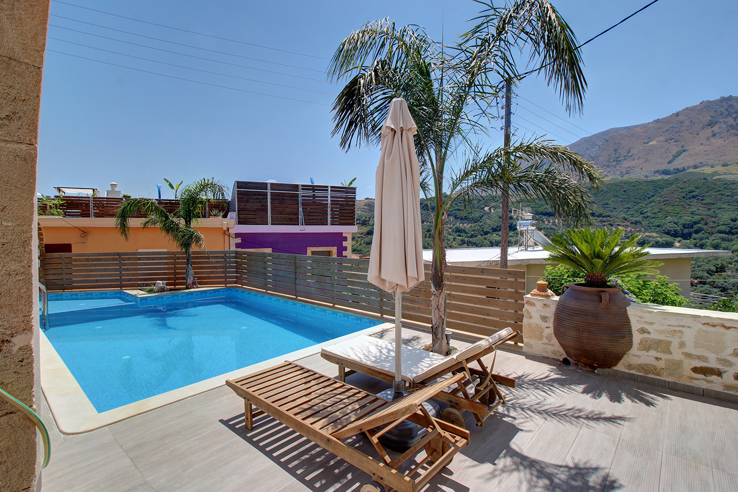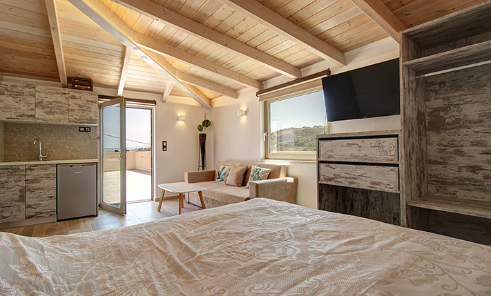 The village has many small guesthouses, taverns, beautiful buildings, traditional cafes and mini markets that are open all year round. The area is suitable for hiking in nature and around the village there are forests and countless olive groves. In Kavros you will find a big supermarket and some more shops. The sandy beach is long and has many in areas with facilities or quieter places. Within 15 minutes’ drive are the small town and the beach of Georgioupolis, where you will find several shops and services. The cities of Rethymnon and Chania are about 30 and 45 minutes’ drive, respectively.