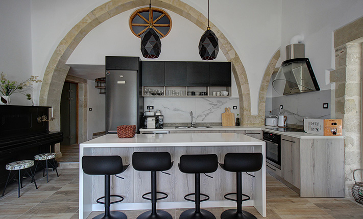 The property is in a village of Apokoronas, about 4 km away from the lake of Kournas and 5 km from the long, sandy beach of Kavros. The village is quite old and the construction date of the building is estimated in the period of Venetian rule. The architectural style of the house is impressive as the ground floor is about 4.5 meters high and includes imposing stone arches, two large vaulted rooms and many decorative and other elements that reflect its traditional character.