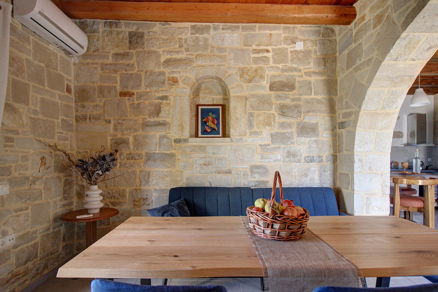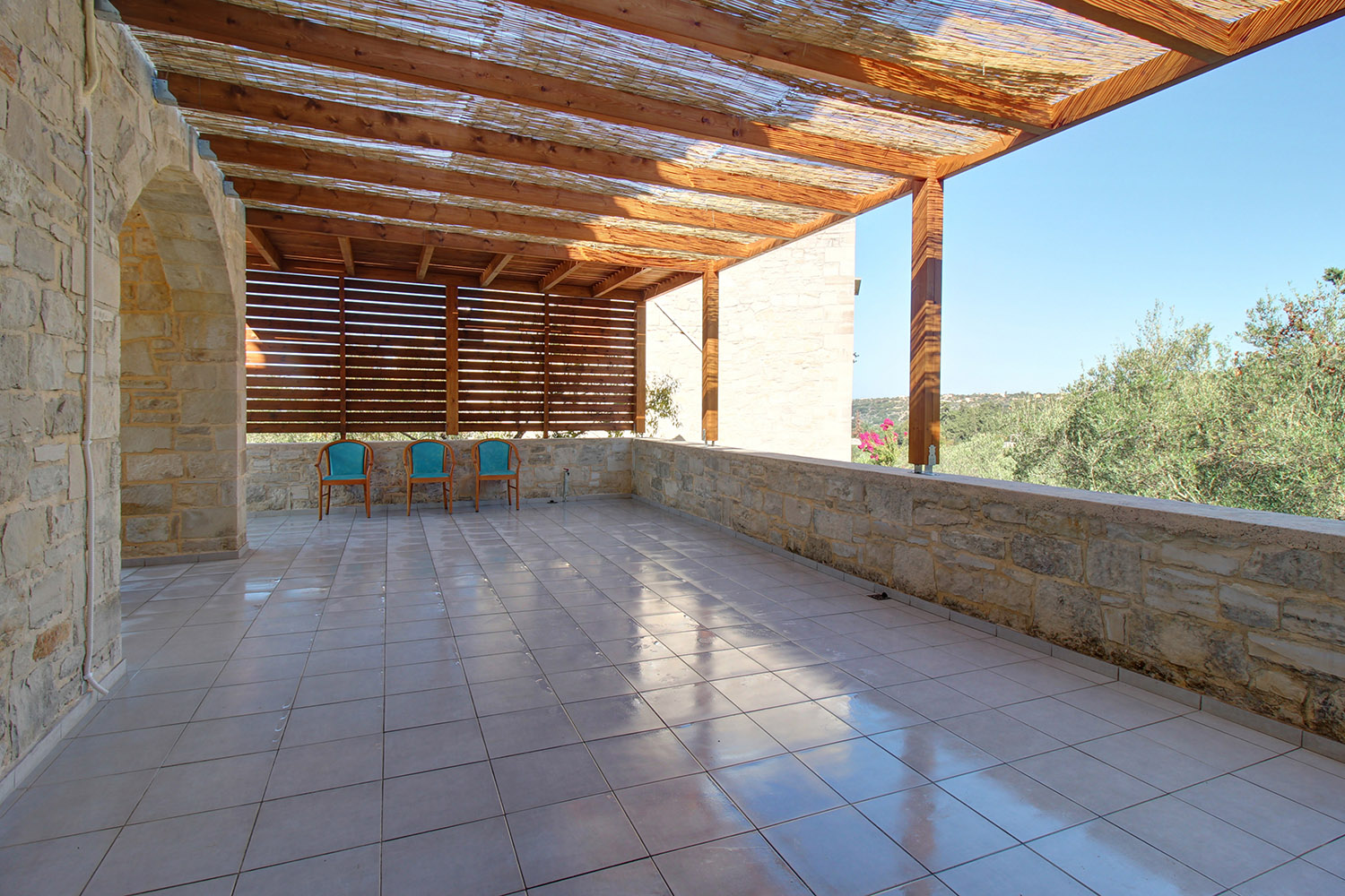 All rooms have air conditioning. The house has solar panel as well as aluminum doors and windows with double glazing. The property has many traditional elements with stone that is visible in a large part of the walls and beautiful wooden ceilings. At the same time, all the spaces have been recently renovated and there is new furniture. Therefore the result is tasteful, modern and fully functional. The villa is configured and equipped so that it can be leased immediately and is available for sale with a ready license by the Greek National Tourism Organization.
