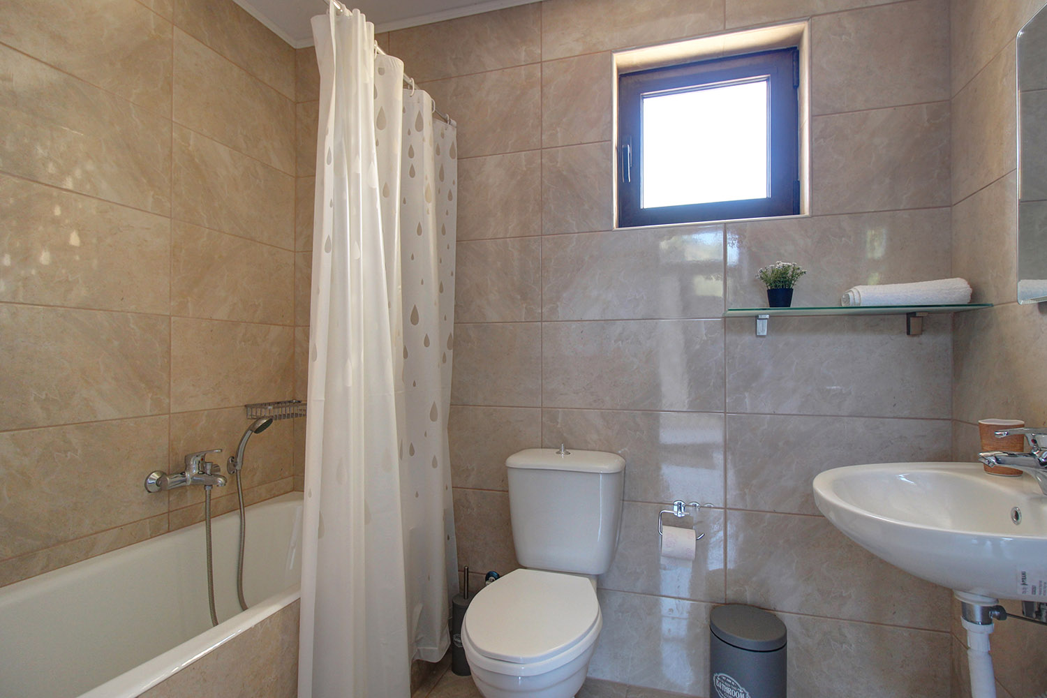 The area is verdant and in a short distance there are many nice villages, which are worth exploring. The wonderful beach of Almyrida has facilities and along it there are many taverns and cafes. In the small town of Kalyves, which is about 15 minutes' drive, you will find banks, restaurants, schools and many shops. The city and the airport of Chania are about 40 and 45 minutes' drive, respectively.