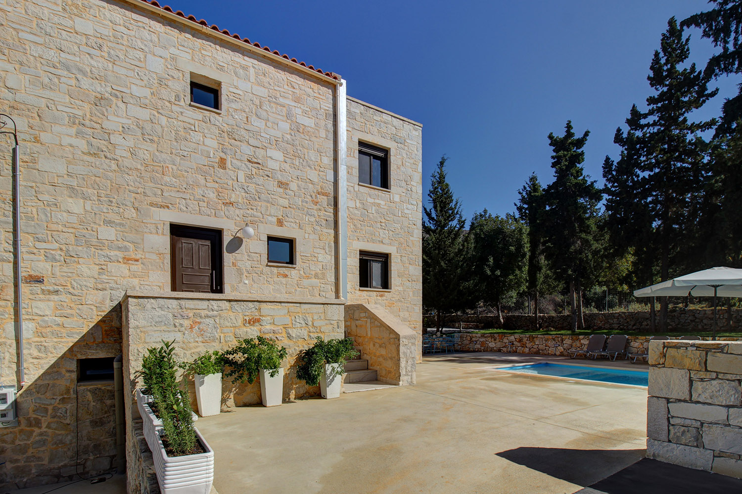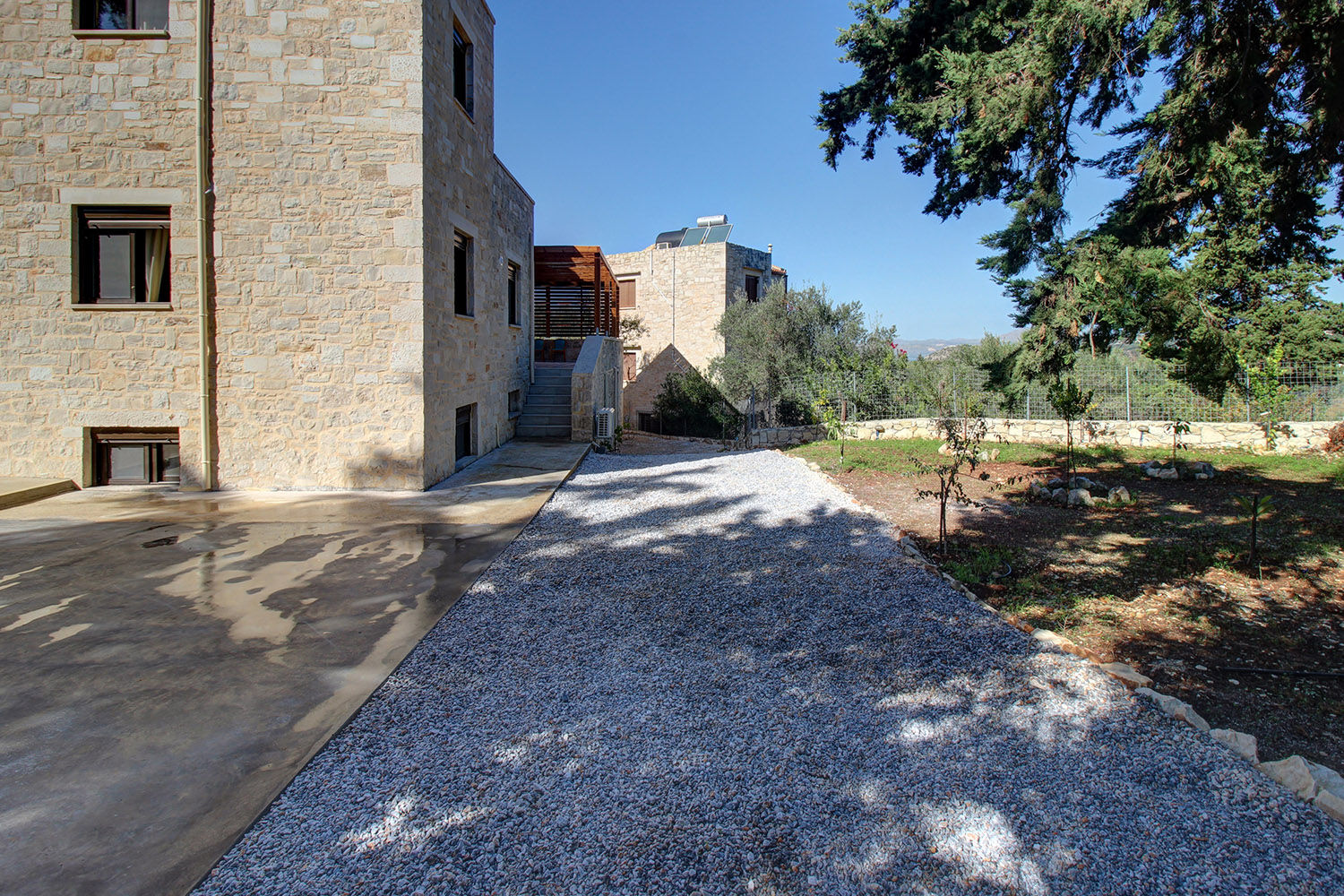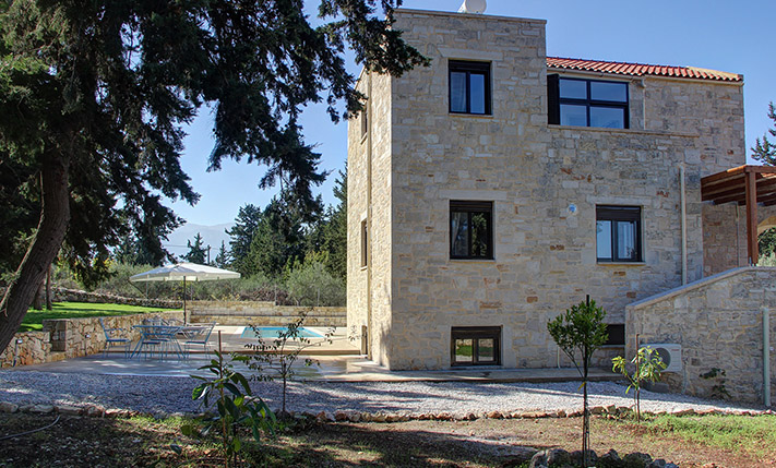 The residence is in a quiet location between the villages of Gavalochori and Almyrida. It is part of a complex with three residences, which share only one common entrance while each has a large outdoor area in its exclusive use. The house is on the edge of the complex and has many areas with good privacy while offers beautiful views of the sea and the ridge of the White Mountains.