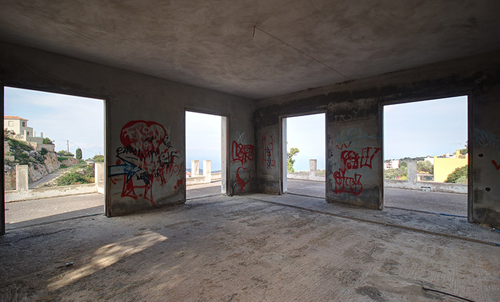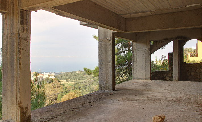 The property is about 10 minutes south from Rethymnon city. It is located on a hillside with a north orientation, from where it offers unobstructed and impressive views over the verdant surrounding area and up to the sea. It is an unfinished building, which is at the stage of the construction of walls and is available for sale as it is.