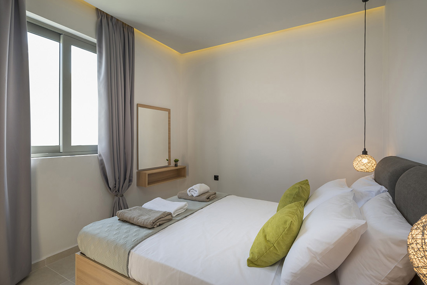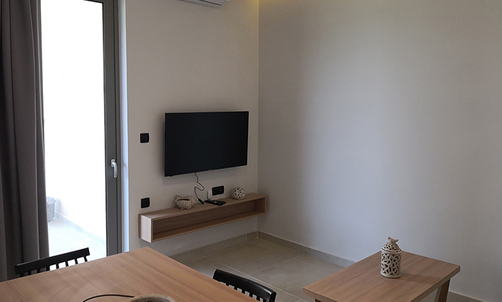Within walking distance there are several shops, a supermarket, a pharmacy and more. Along the beach there are also many restaurants and cafes as well as beautifully landscaped promenades and sports facilities. The city and the airport of Chania are about 25 and 35 minutes’ drive, respectively.