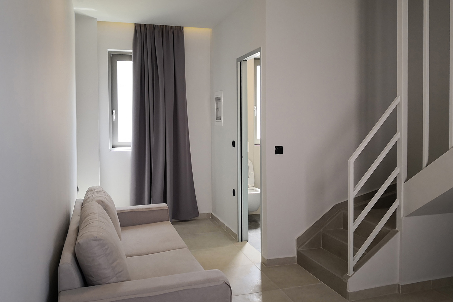 The house has eastern orientation and faces the sea and up to the ridge of the White Mountains. The main entrance is on the ground floor, where we enter an open-plan living, kitchen and dining area. On the ground floor there is a bedroom and a bathroom while on the upper floor there are two additional bedrooms and a bathroom. The property has a keycard power switch, air conditioners and solar panel. The sale price also includes all the furniture and electrical appliances.