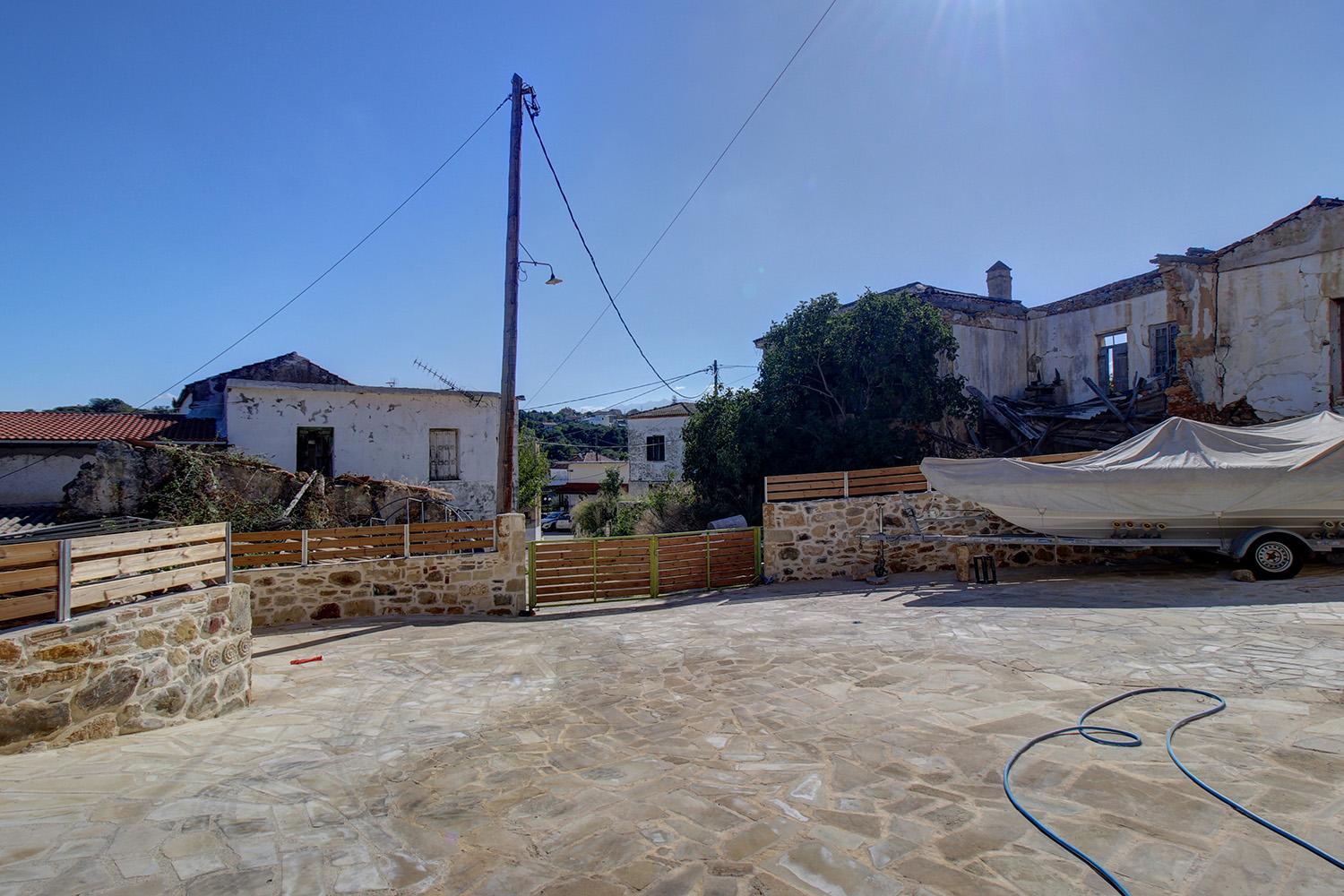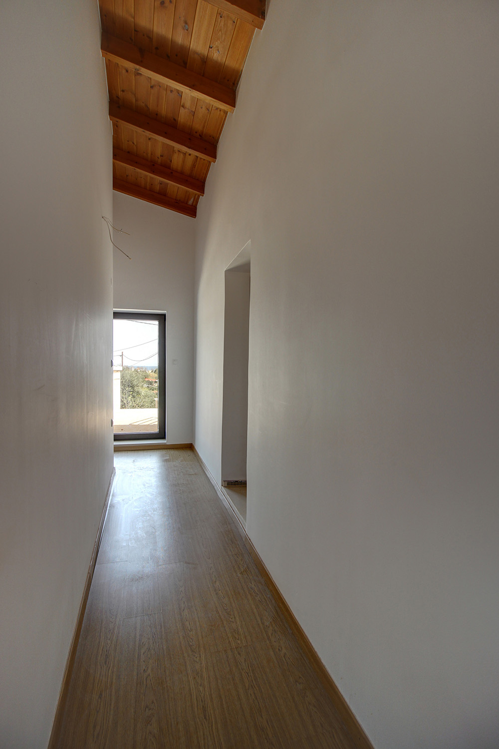 The ready residence has just been restored. Currently, the main areas with a bathroom on the ground floor as well as a bedroom upstairs are fully functional. The completion of two more bedrooms on the upper floor as well as of an en-suite bathroom in the main bedroom is pending. From the first floor there is an exit to a spacious balcony with views of the sea and over the village.