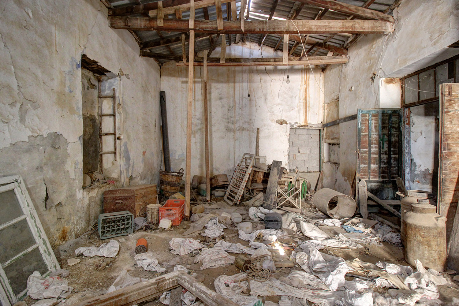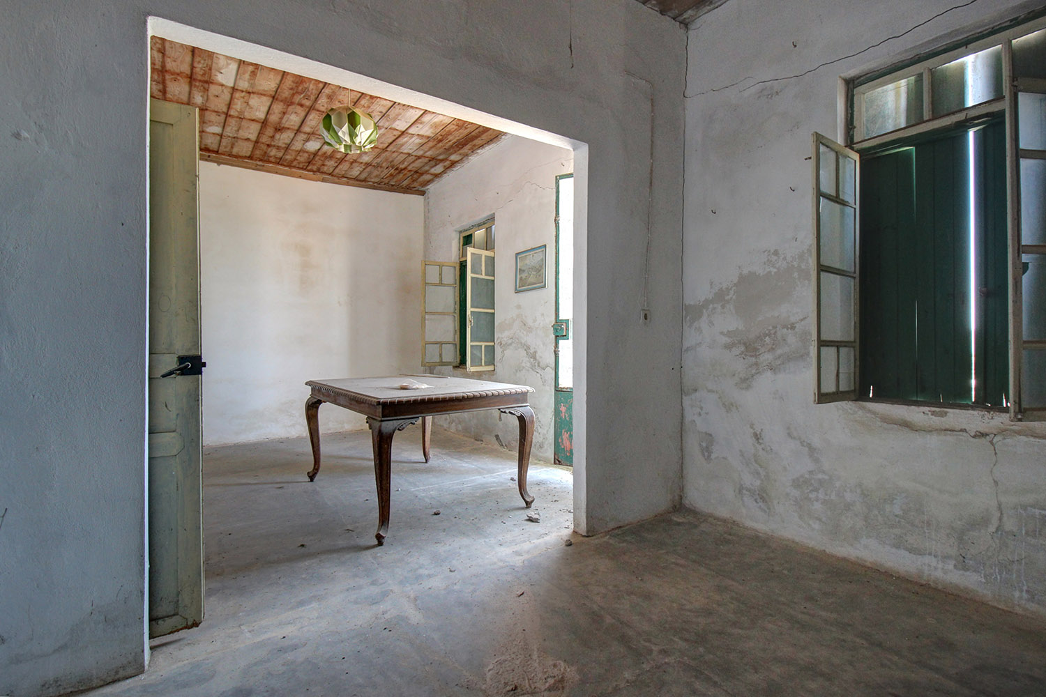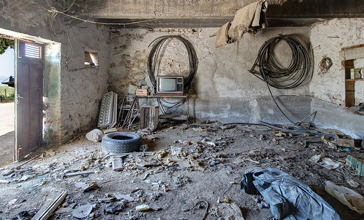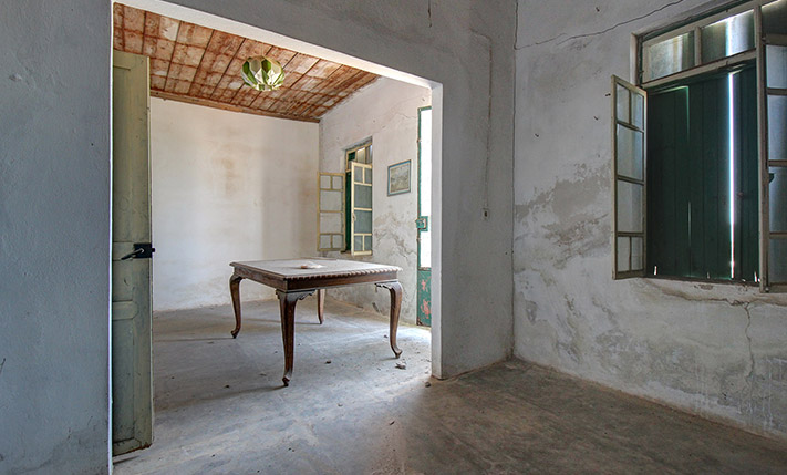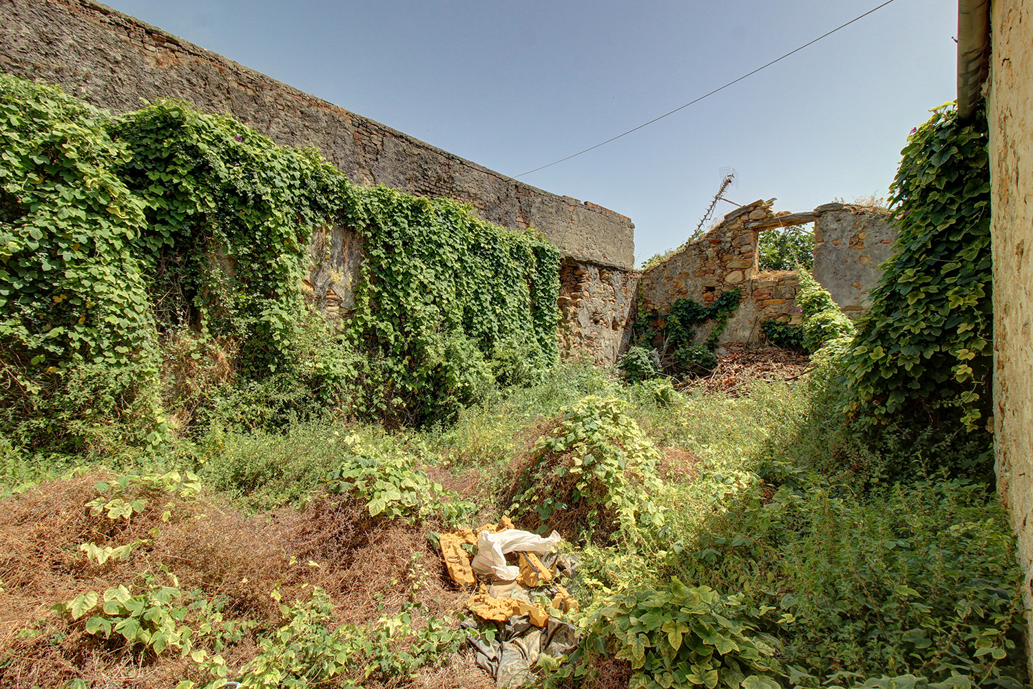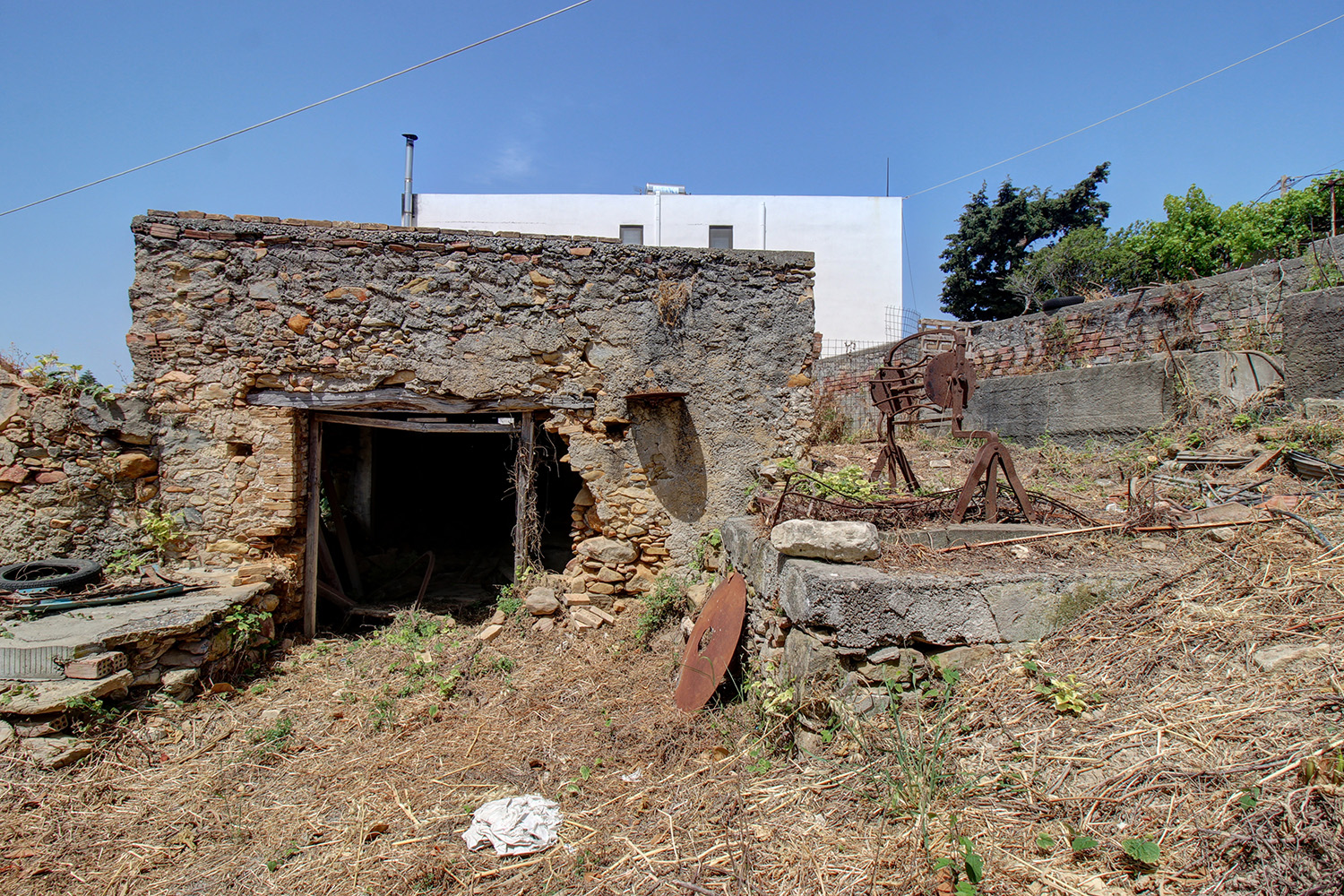 The property includes a residence as well as industrial-storage areas, where wine was produced in the past. It was a single complex but as a section in its center has collapsed. There are currently two independent buildings, between which an inner courtyard is formed. This point has good privacy as the walls of the fallen section remain.