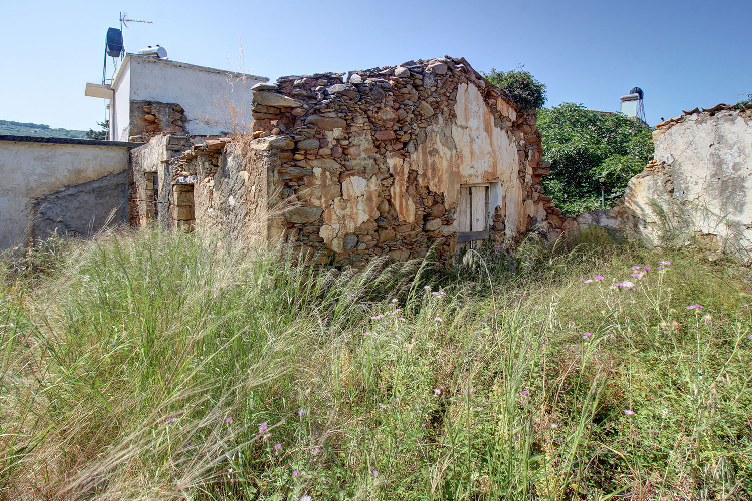 The property is in the center of a traditional village in the municipality of Platanias, between the small town of Voukolies and the seaside Tavronitis. It is an old ruined building with two adjoining rooms of about 60 m² that have slabs on the roof as well as an additional ruined empty section, which can be used as a decorative element in any restoration. The plot is good-sized and has a slope on its frontage from the south side, which ensures unobstructed views over the verdant plain of the river Tavronitis and up to the ridge of the White Mountains. The property is an excellent choice for renovation of the existing building or ideally for its expansion and use as on the plot up to 240 m² can be constructed for residential use.
