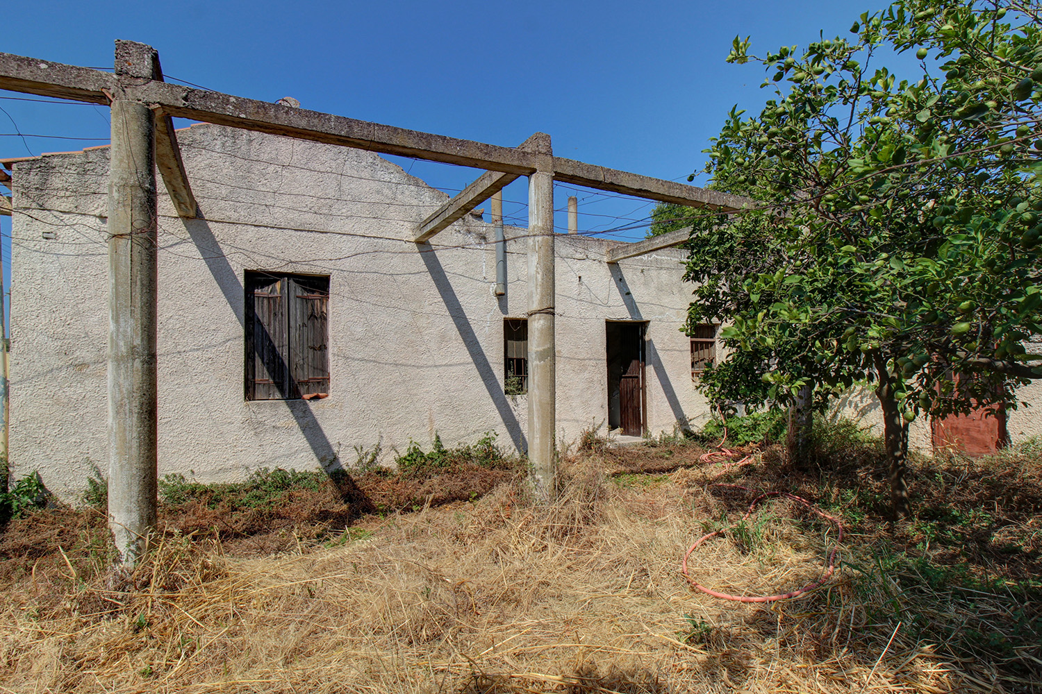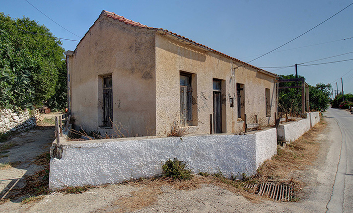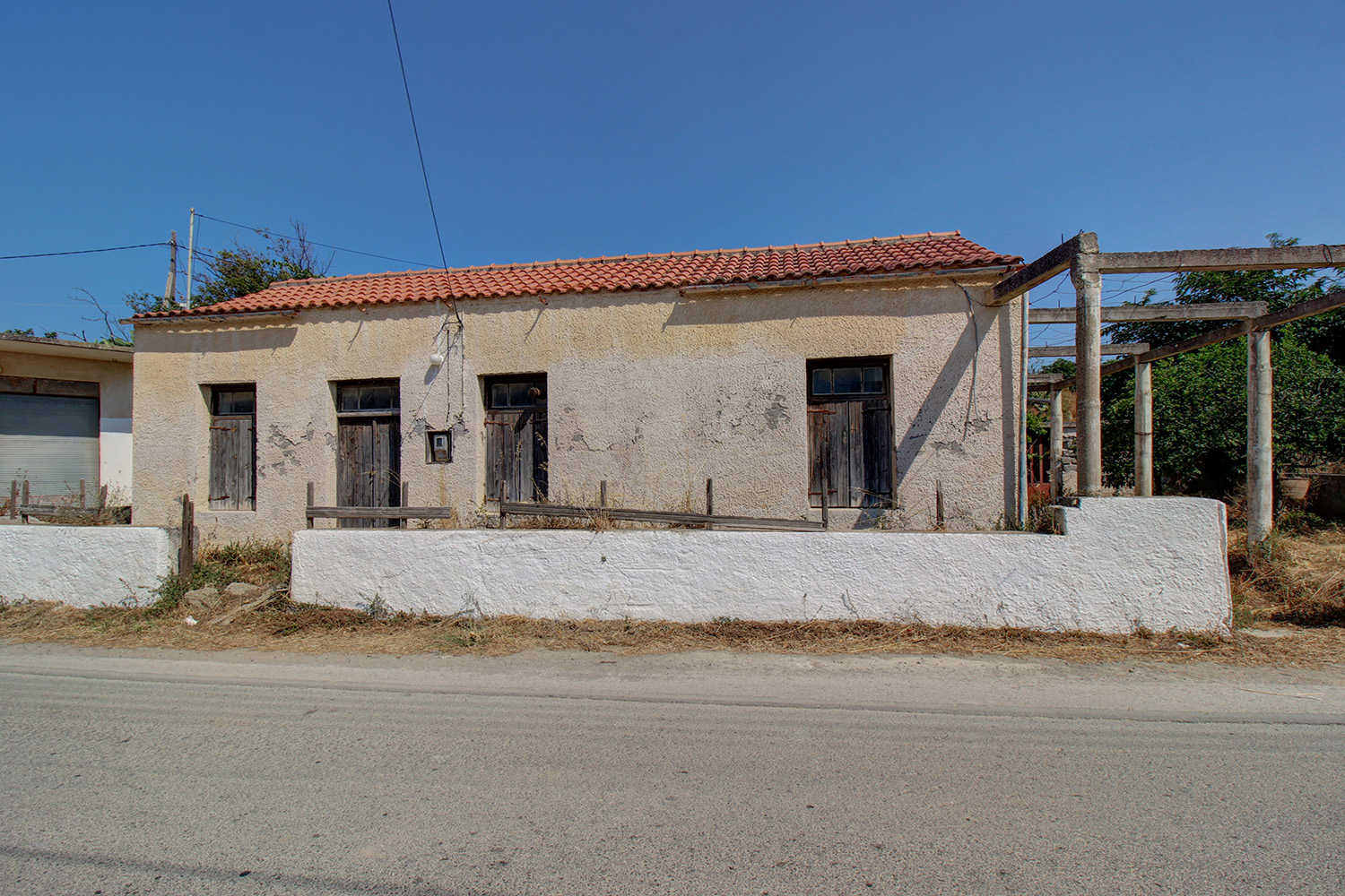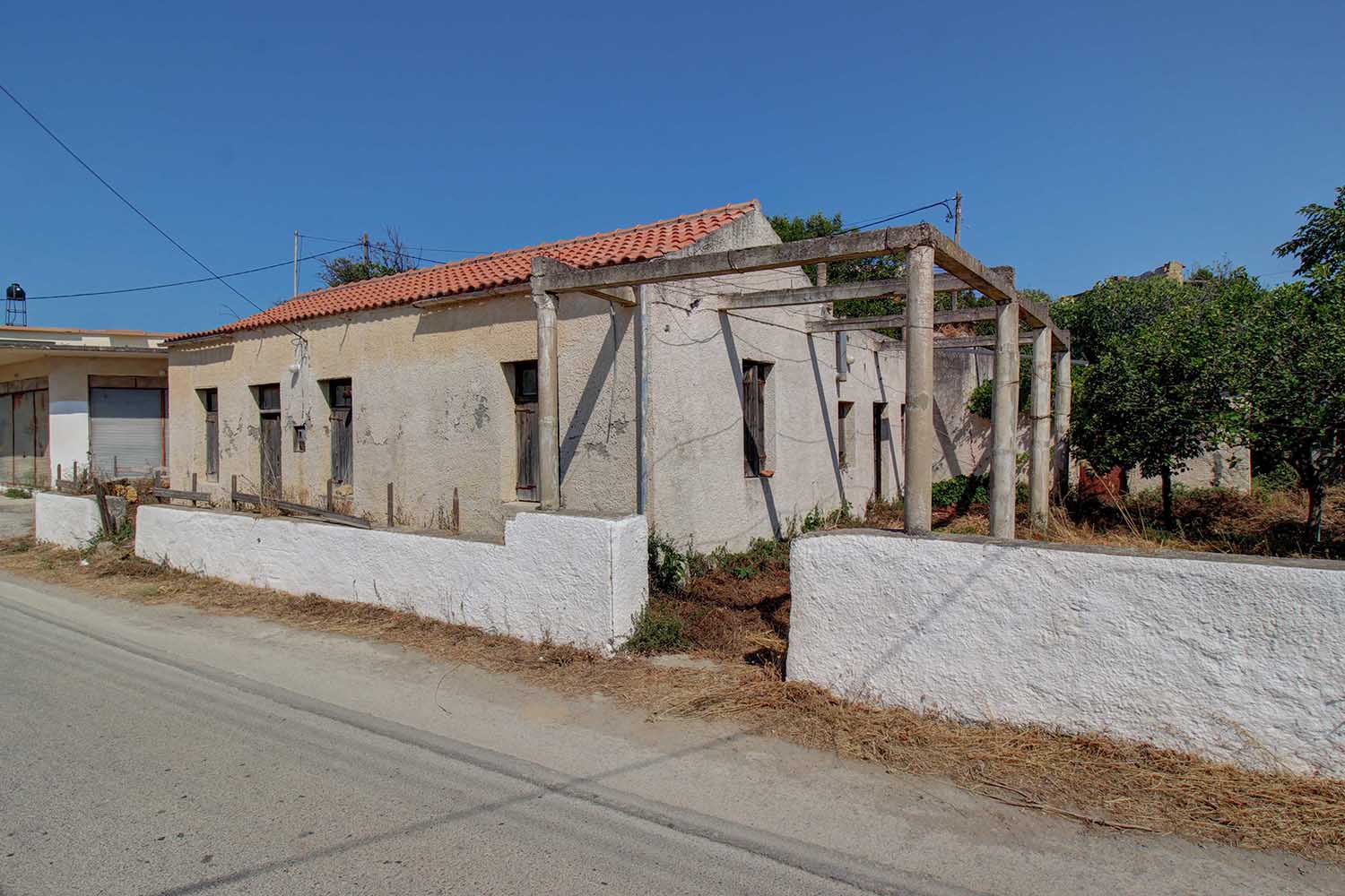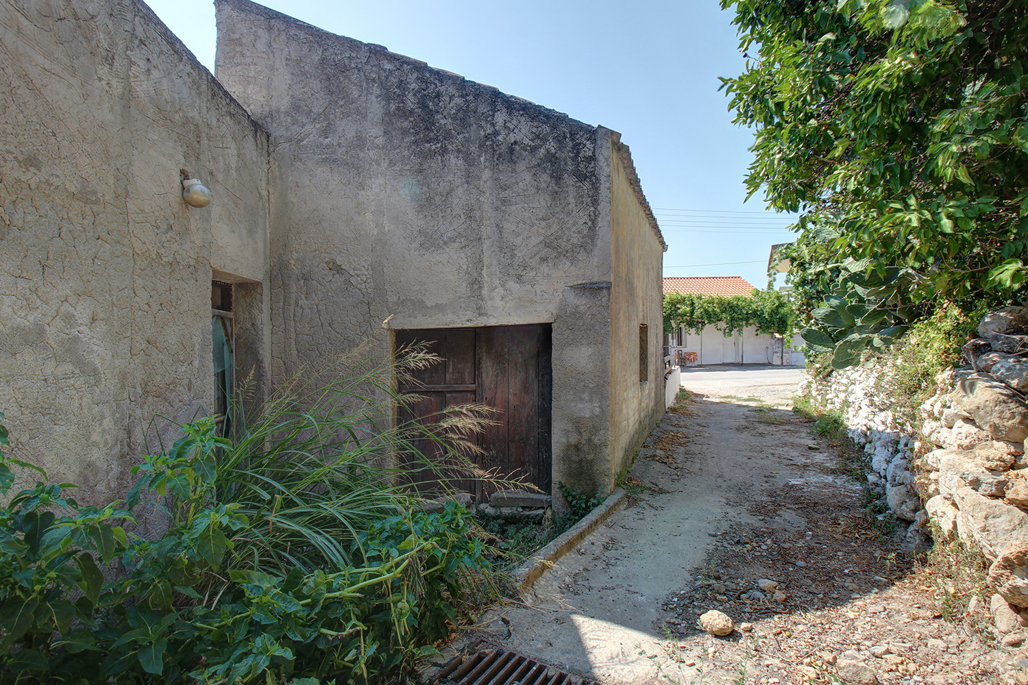 The building follows the traditional Cretan architecture, according to which all areas are connected through a central courtyard. The house is L-shaped and is built at the western end of the plot so that the openings are southeast and the yard and garden are located in the rest of the space. In the yard there is a concrete pergola, where you can plant a grapevine. On the garden there are two big orange trees as well as enough space, if you want to add a swimming pool.