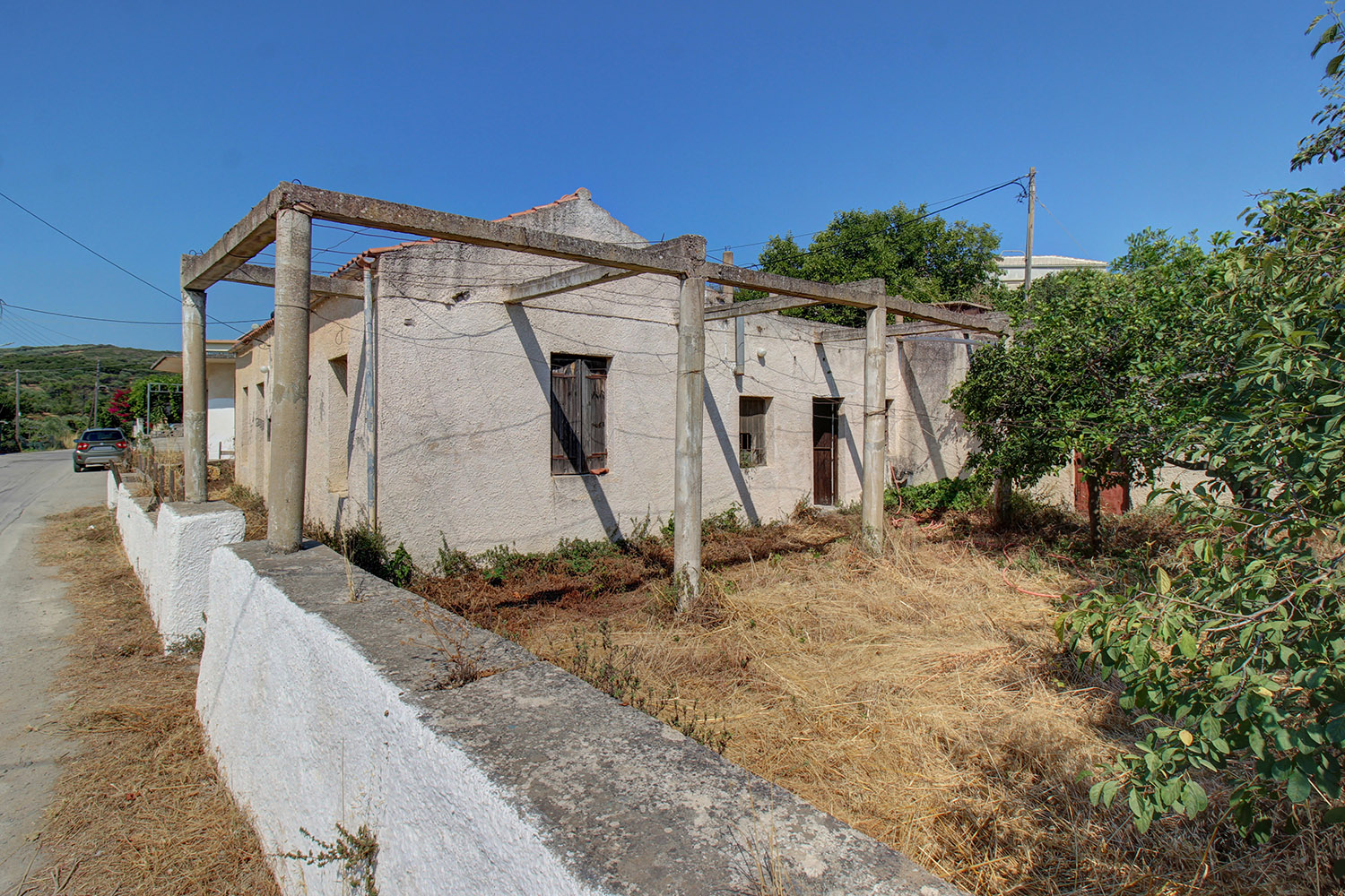 The property is in a picturesque village about 10 minutes' drive south from the small seaside town of Kolymbari. It is an old ground-floor house, which is stone-built and needs repairs but was inhabited until recently. Structurally, it has no obvious problems and can become fully functional and habitable with little money. The great advantage of the property is its plot, which has a good shape and is adjacent to a road on three sides. You can build up to 240 m² for main residential use, which allows you to add extra rooms or another floor. If you build an upper level, you will have unobstructed views to the ridge of the White Mountains in the background.
