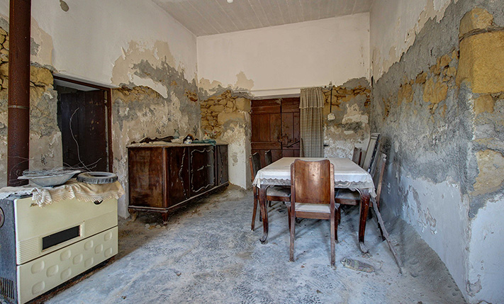 The largest part of the building has slabs on the roof while two rooms have tiled roof. More work is required for a storage area of about 25 m², which is not configured. If you renovate all the spaces, the existing layout allows you to create up to three comfortable bedrooms with open-plan or a separate living space/kitchen area and as many bathrooms as you need. The building is a good choice, if you want to construct a functional house with interesting traditional elements and a garden.