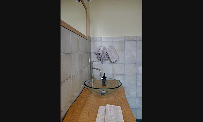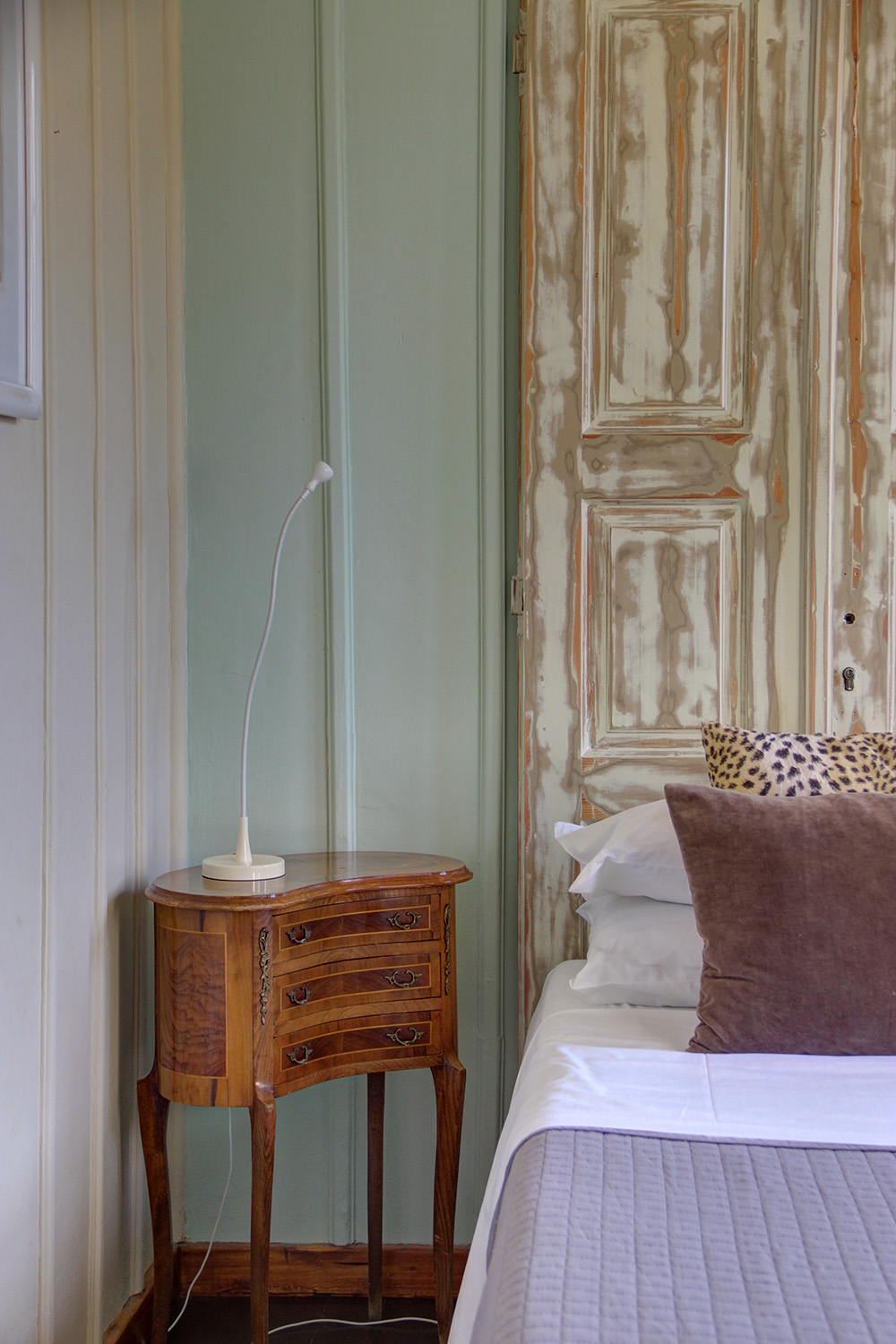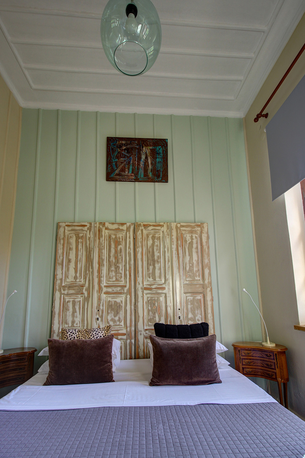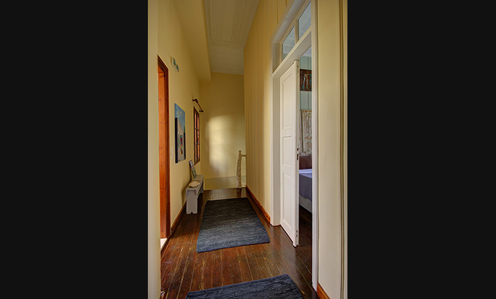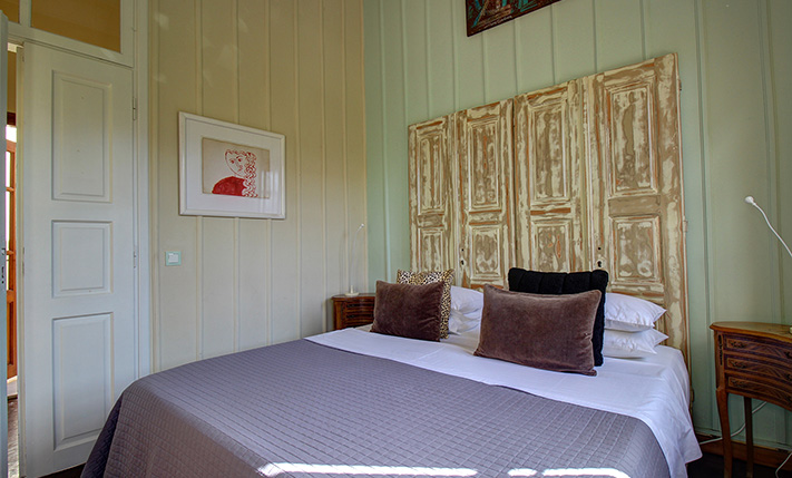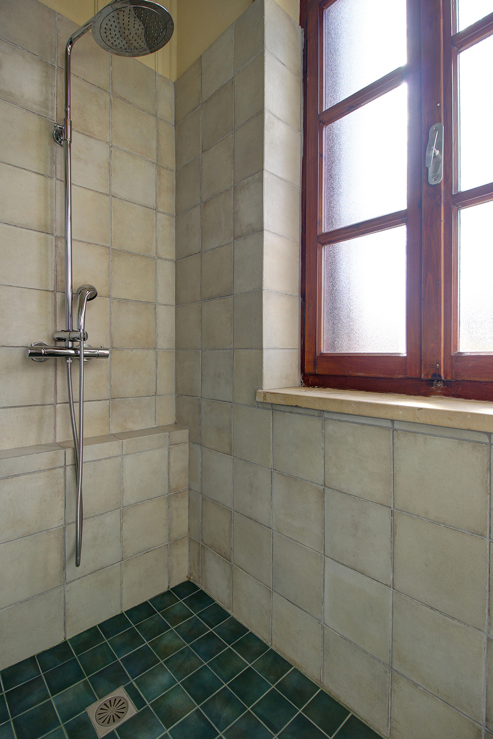 The handmade wooden staircase that leads to the upper floor is impressive. Upstairs, we find a central corridor that leads us to two bedrooms with impressively high ceilings, each of which has its own bathroom. A door opens to an enclosed interior balcony with good privacy. Here, there is also the old bathroom of the residence, which can be used as it currently is or as a storage room.