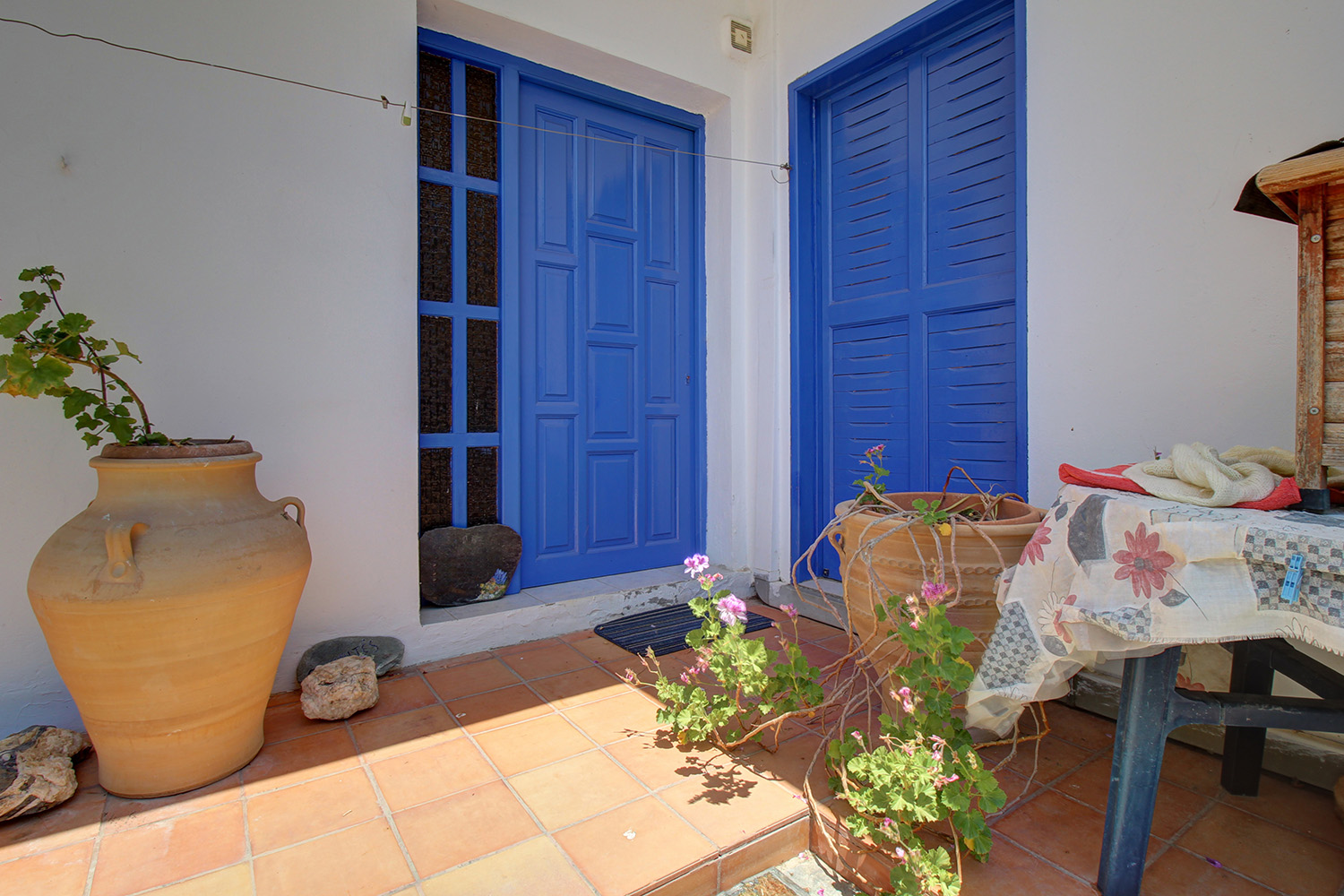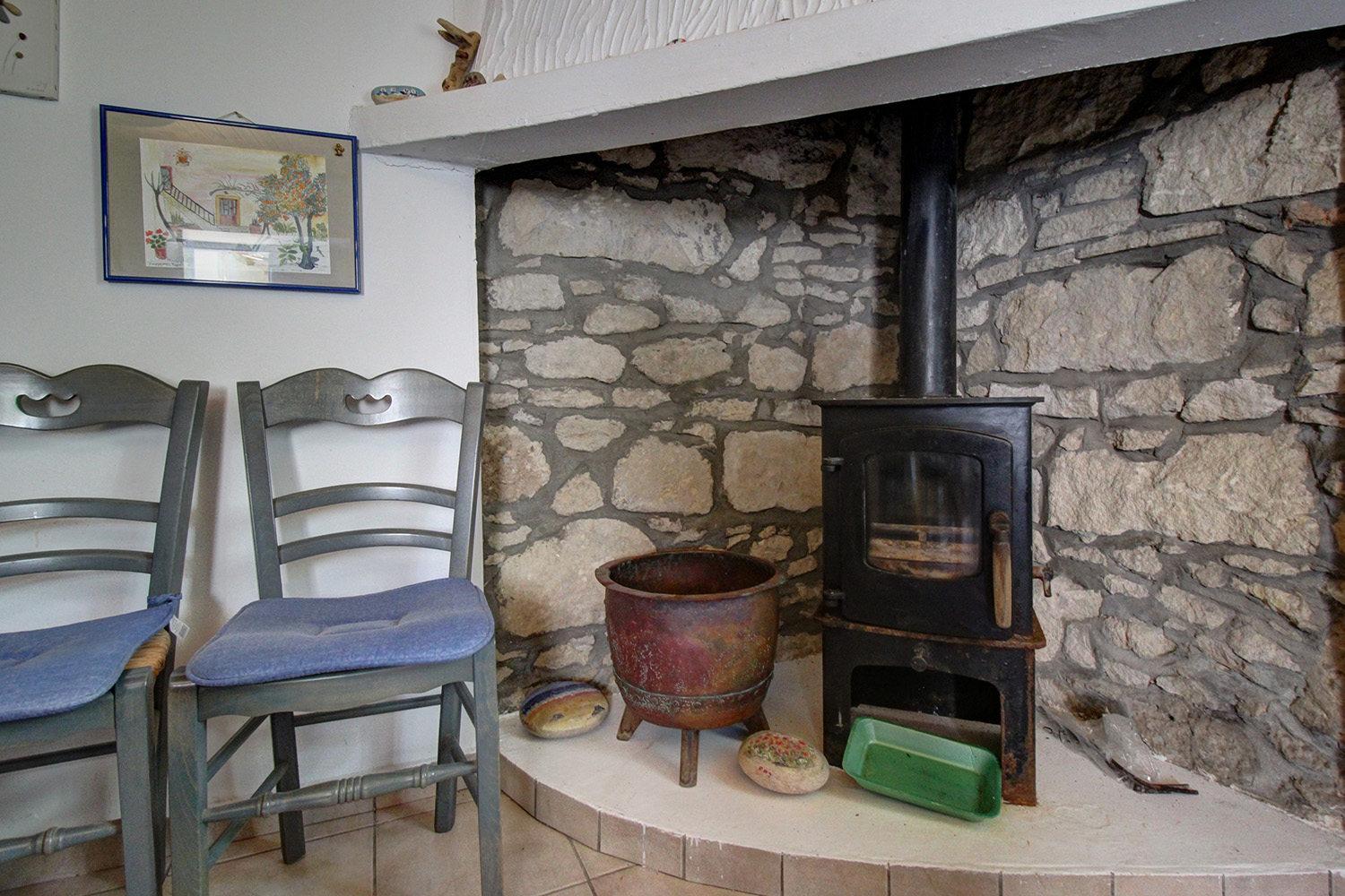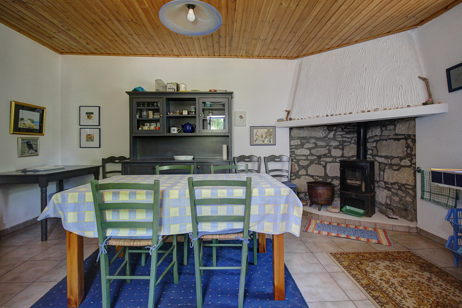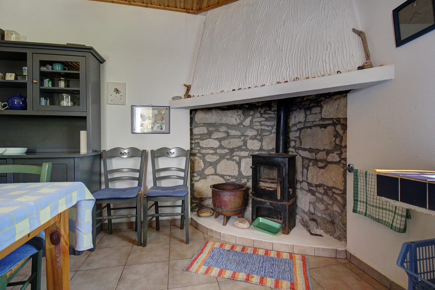 The house is stone built. If you renovate it you will probably be able to highlight the old walls in order to have an impressive rustic residence. The building follows the traditional layout of Cretan farmhouses, in which all the spaces are connected to each other in a row while at the same time have direct access to the courtyard. There are two entrances, from the kitchen or from a corridor that leads to the living space, the bathroom and the bedroom. An additional room has been separated in order to become a storage space and has access only from the outside but can very easily accommodate a small guestroom or an office. The plot has remaining buildable area if you want to extend the residence or even to add an extra floor. The home is suitable for holiday use and has two wood burning stoves that are enough to heat all the rooms.