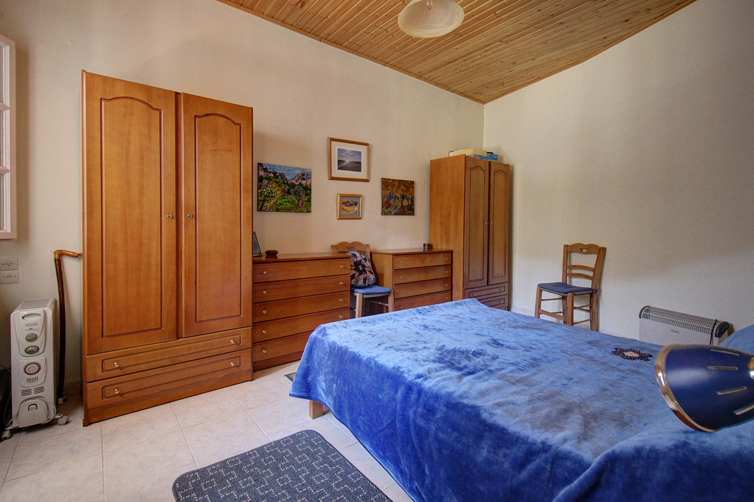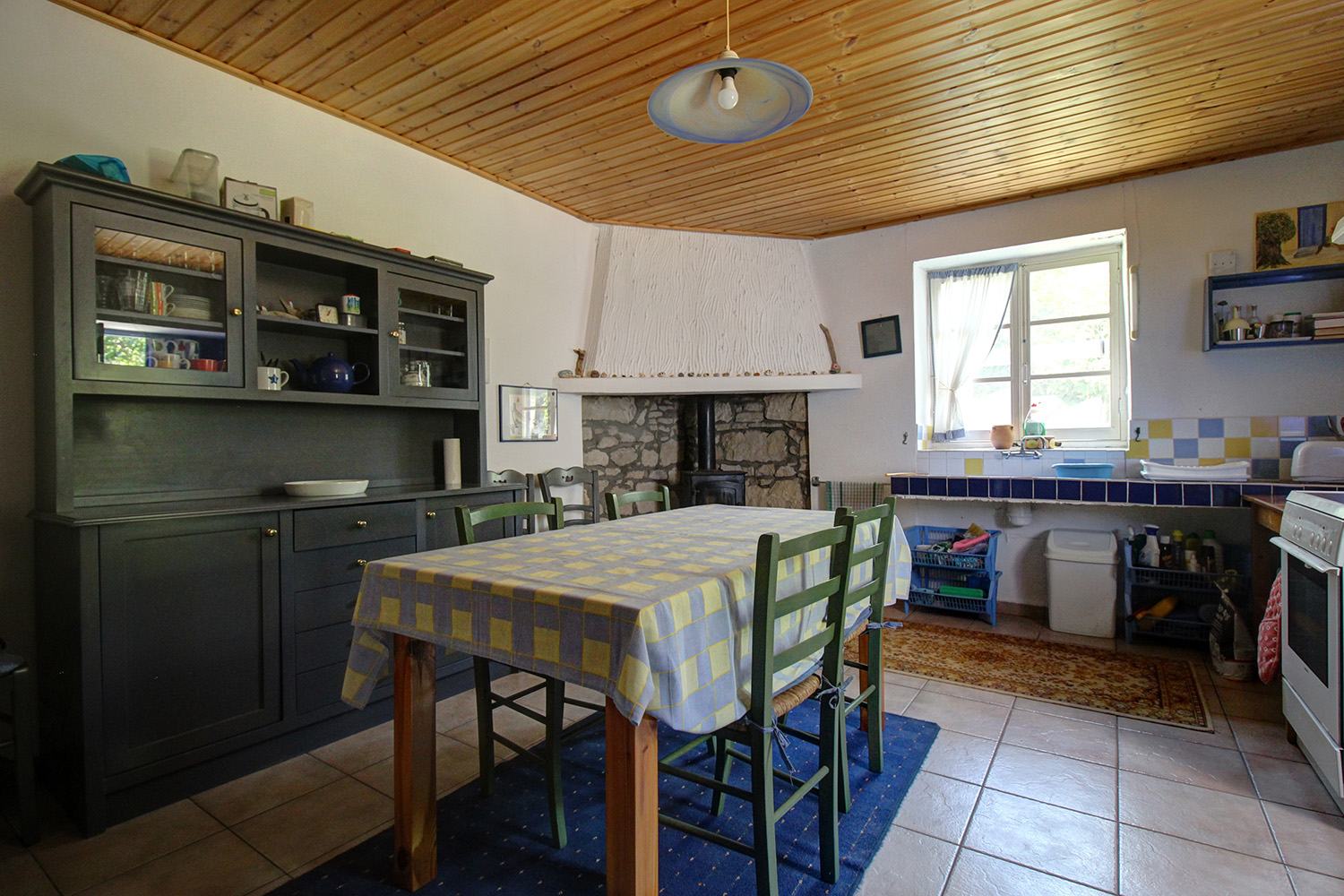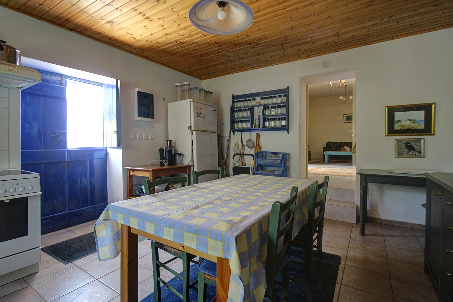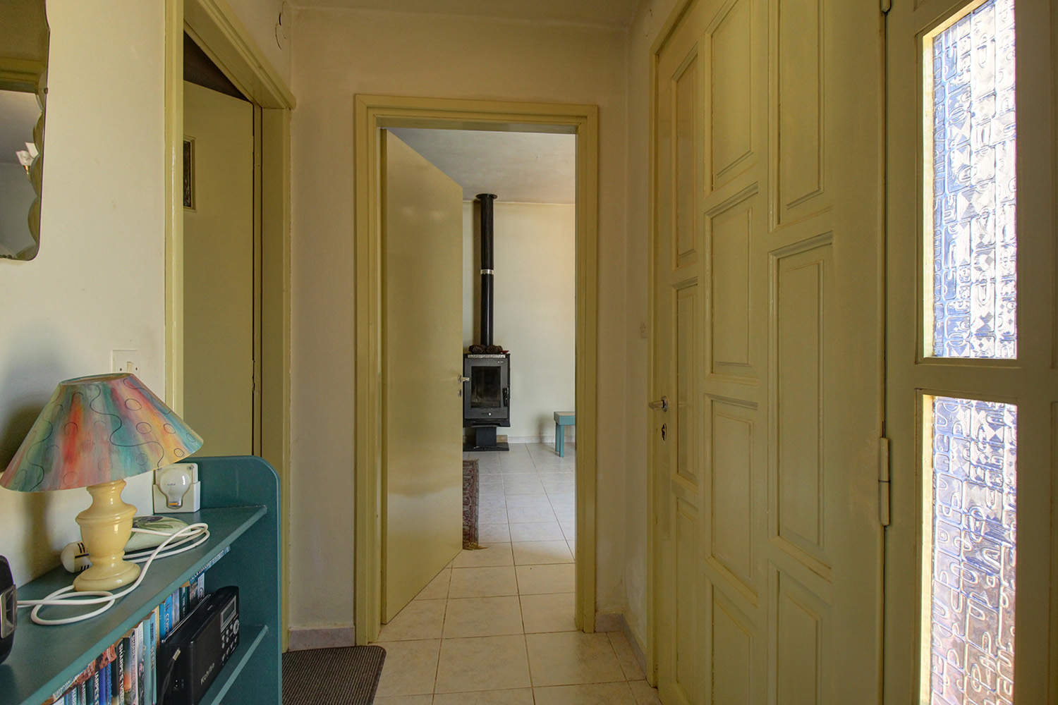 The house is stone built. If you renovate it you will probably be able to highlight the old walls in order to have an impressive rustic residence. The building follows the traditional layout of Cretan farmhouses, in which all the spaces are connected to each other in a row while at the same time have direct access to the courtyard. There are two entrances, from the kitchen or from a corridor that leads to the living space, the bathroom and the bedroom. An additional room has been separated in order to become a storage space and has access only from the outside but can very easily accommodate a small guestroom or an office. The plot has remaining buildable area if you want to extend the residence or even to add an extra floor. The home is suitable for holiday use and has two wood burning stoves that are enough to heat all the rooms.