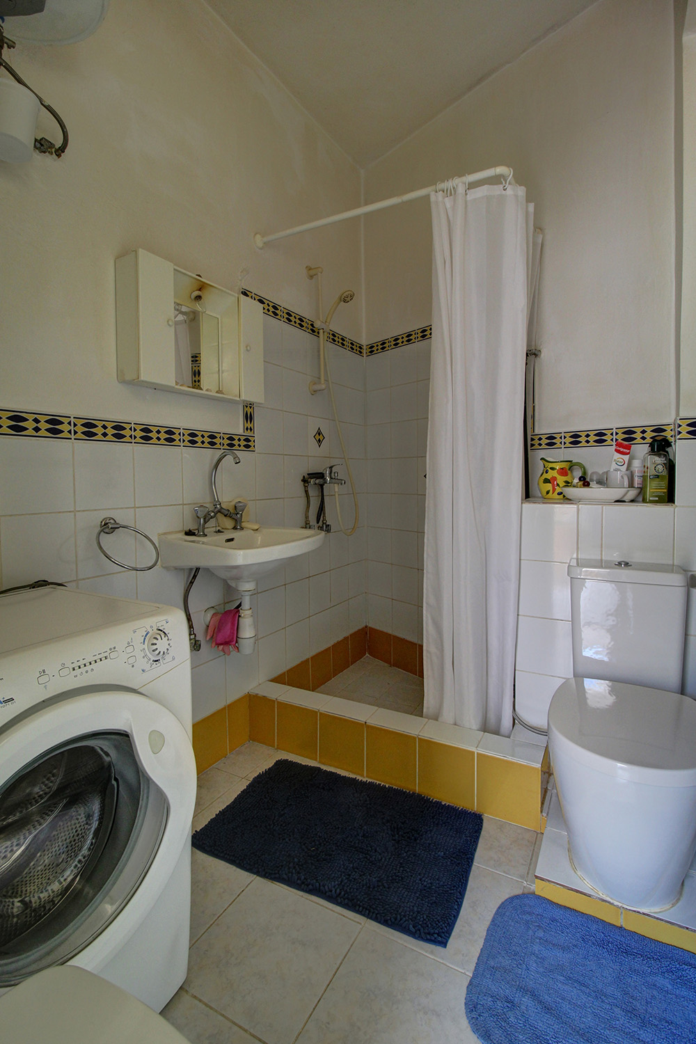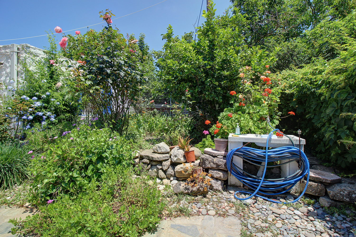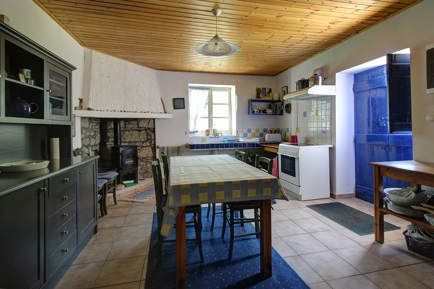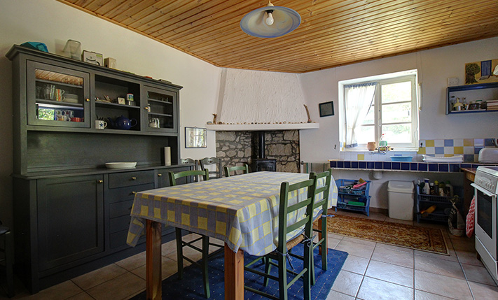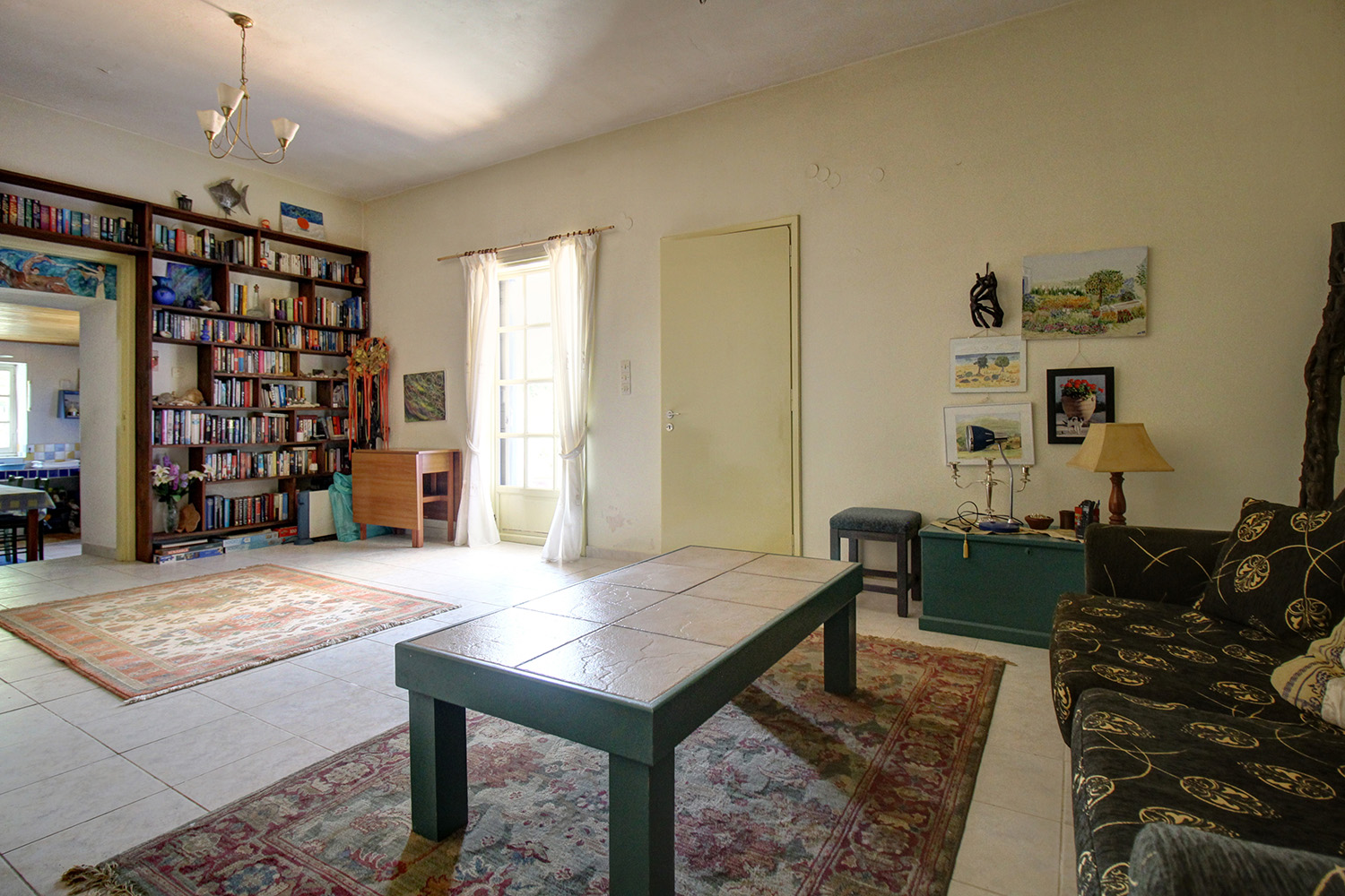 The house is stone built. If you renovate it you will probably be able to highlight the old walls in order to have an impressive rustic residence. The building follows the traditional layout of Cretan farmhouses, in which all the spaces are connected to each other in a row while at the same time have direct access to the courtyard. There are two entrances, from the kitchen or from a corridor that leads to the living space, the bathroom and the bedroom. An additional room has been separated in order to become a storage space and has access only from the outside but can very easily accommodate a small guestroom or an office. The plot has remaining buildable area if you want to extend the residence or even to add an extra floor. The home is suitable for holiday use and has two wood burning stoves that are enough to heat all the rooms.