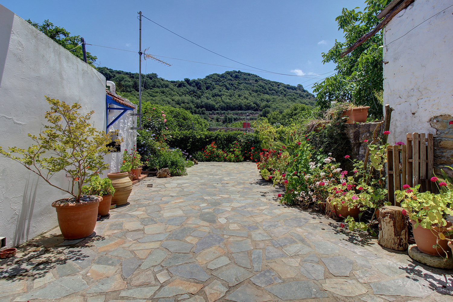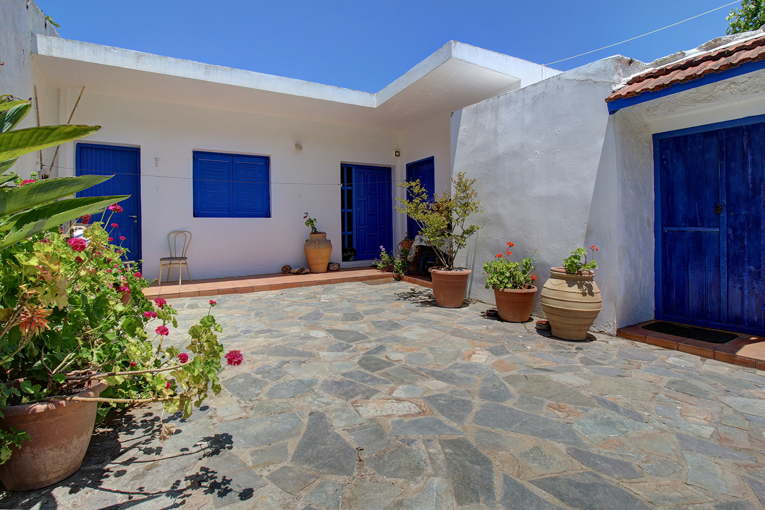 The property is in an old Venetian quarter of the municipality Platanias, about 20 minutes south from the center of the seaside Kolymbari. It is a beautiful restored residence, which is L-shaped and surrounds a stone-paved courtyard with a flower garden. An alley leads to the house, which is quite wide and therefore you can park your vehicle on the plot of the property.