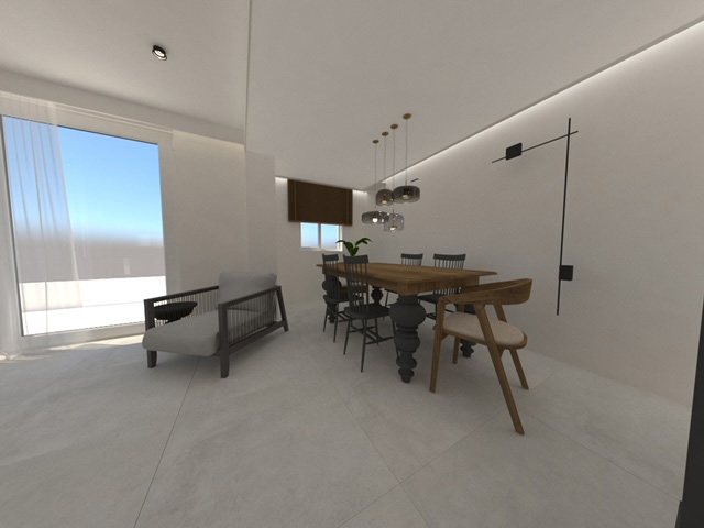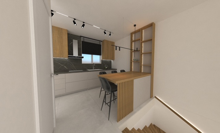 The apartment will be constructed in a building with four properties, where there will be two apartments on the ground floor, two maisonettes on the first floor and a loft above as well as an underground covered parking space with a storage area for each owner. The plot has a northwest slope so that the lowest level of the building can be accessed directly from the road in front of it.