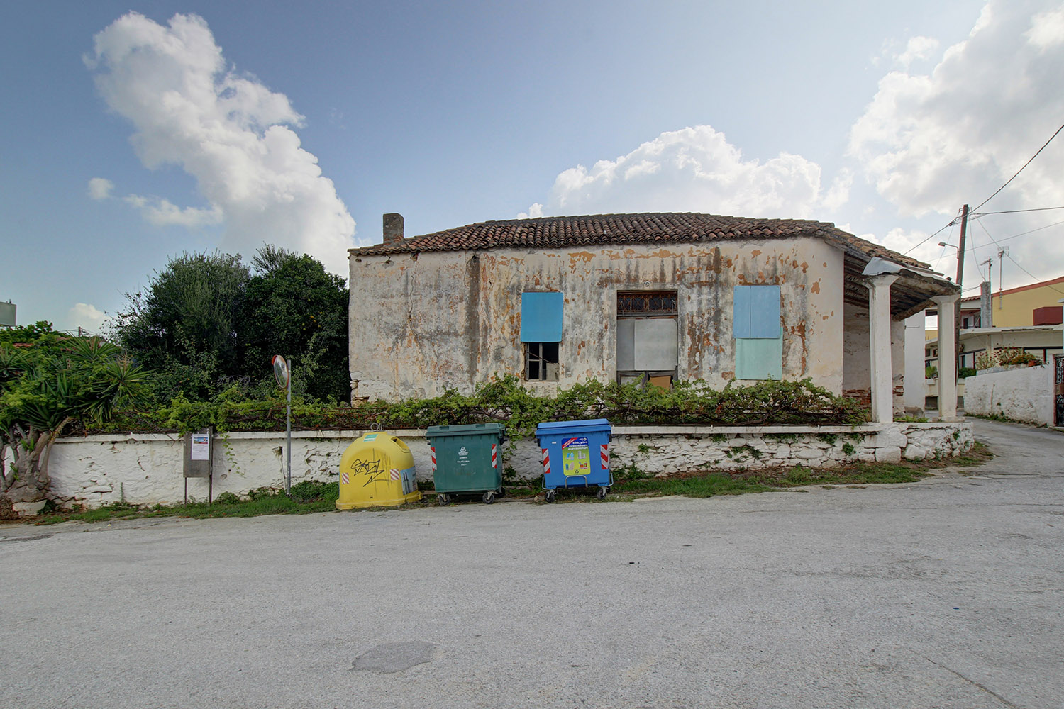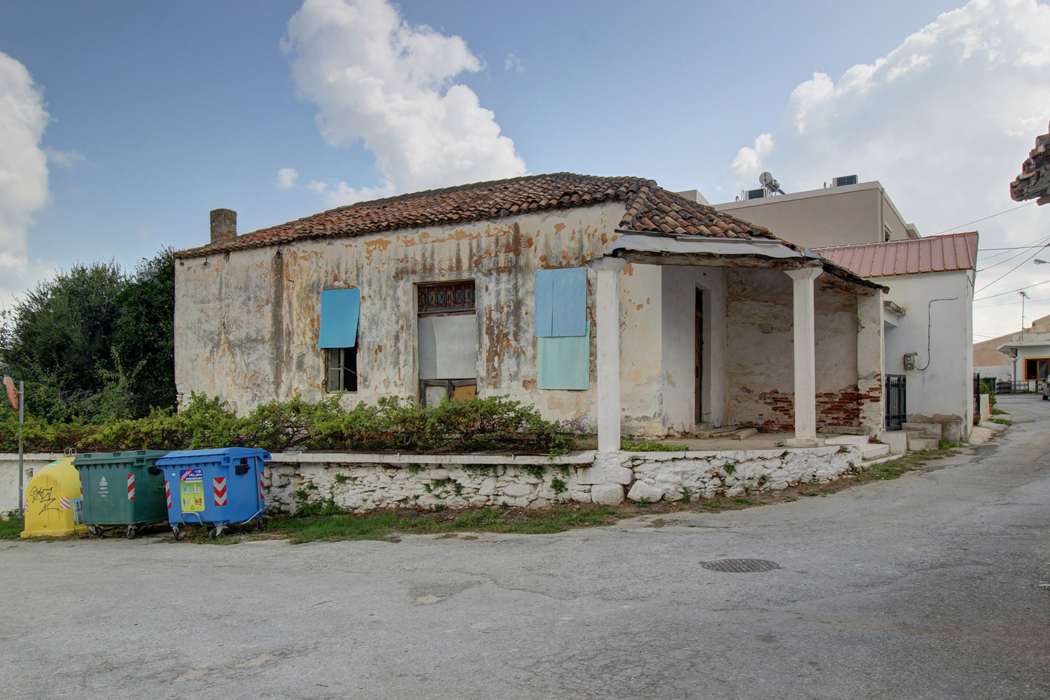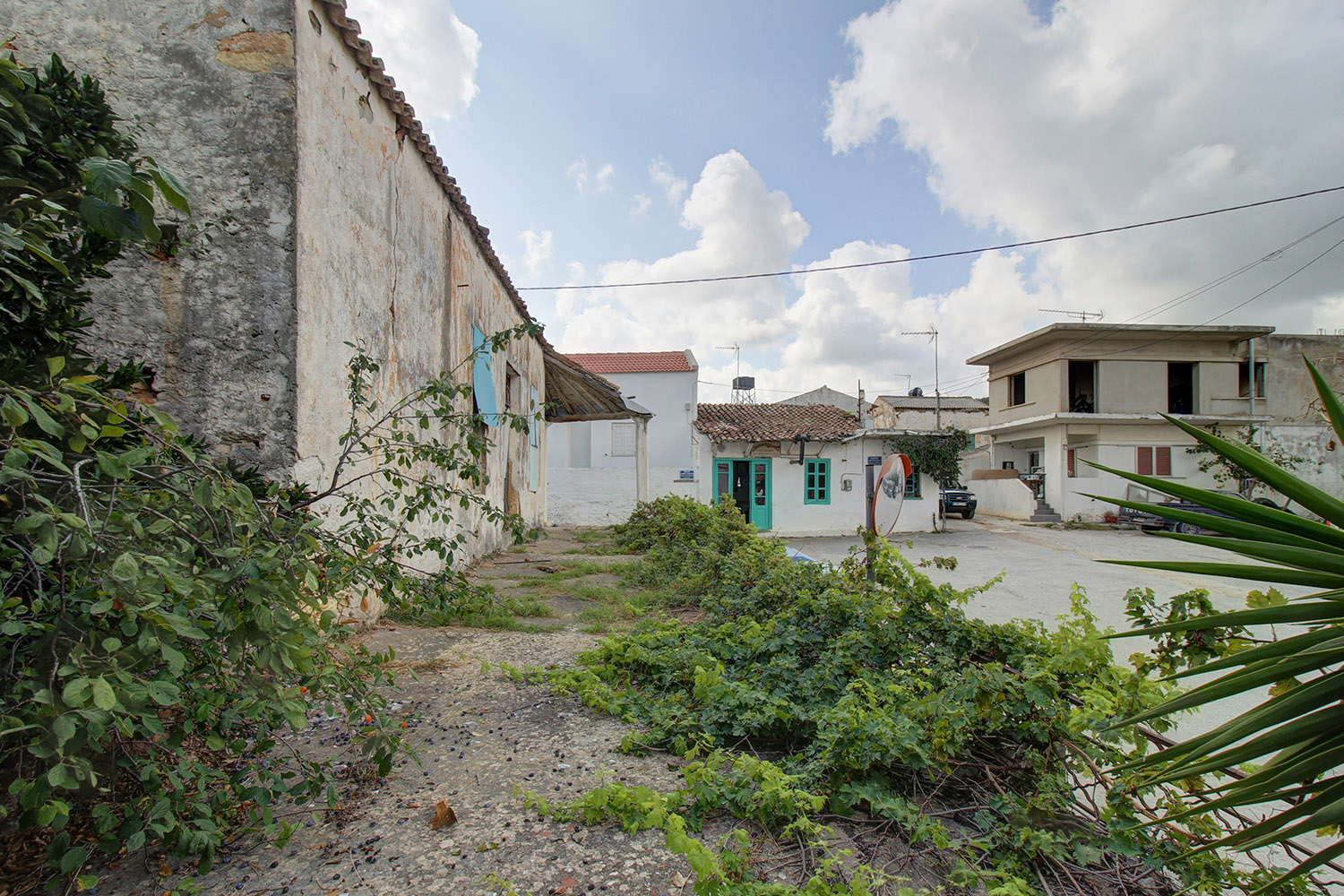 The property is in the central square of a small village east from Kolymbari of the municipality Platanias. It is a building, which has been constructed and used as a kafenio while it is now abandoned and requires repair in order to become usable. Inside, there is a room in an open-plan space with a high tiled roof. On the south there is a roofed terrace while on two sides there are the courtyard and the garden of the old cafe. The building can become a very beautiful residence or it may be repaired in order to be used again as a cafe.